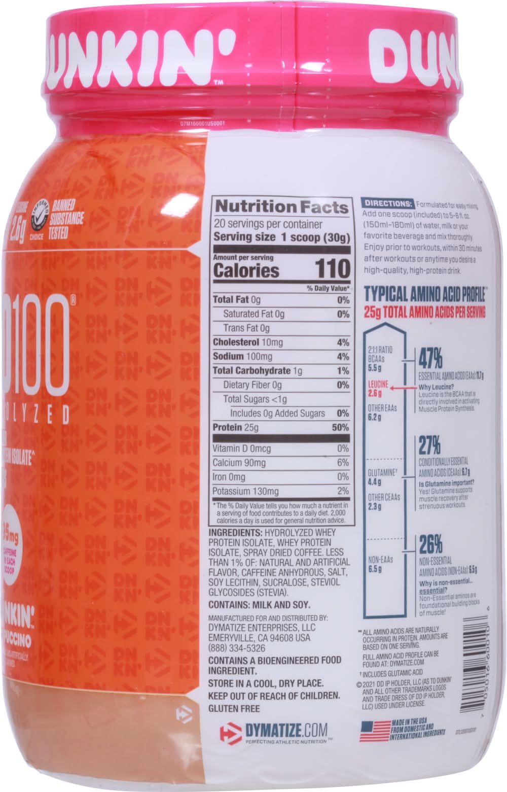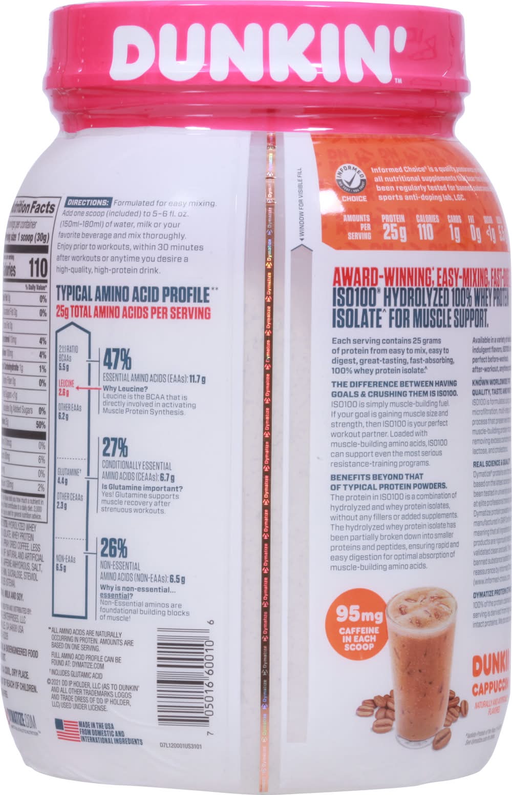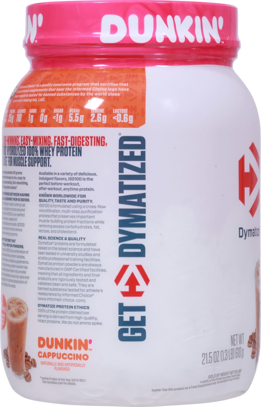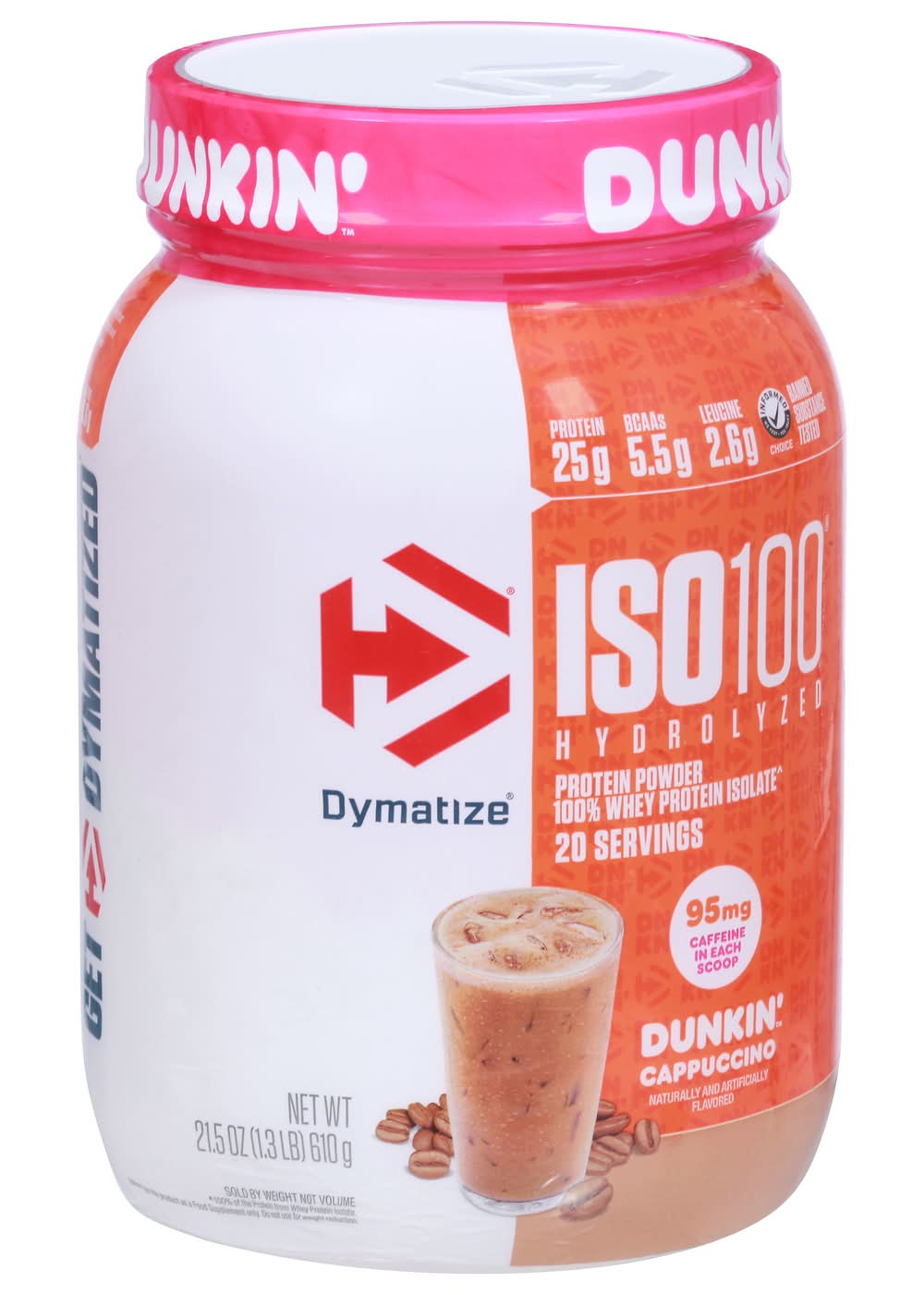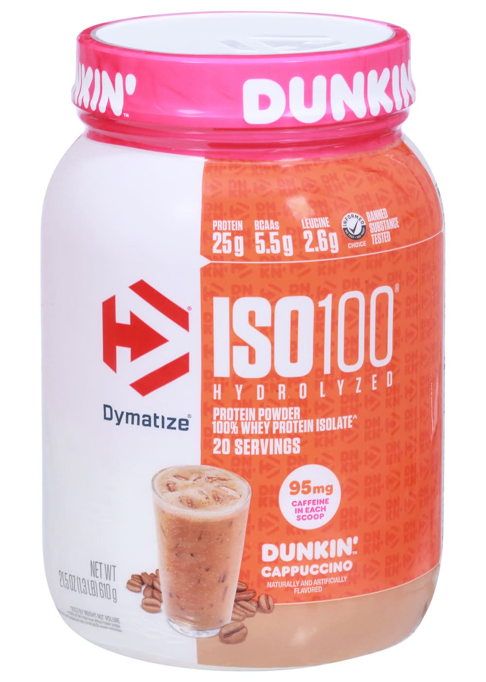 Dymatize Iso 100 Hydrolised Protein Powder, Dunkin Cappuccino (1.3 lbs)