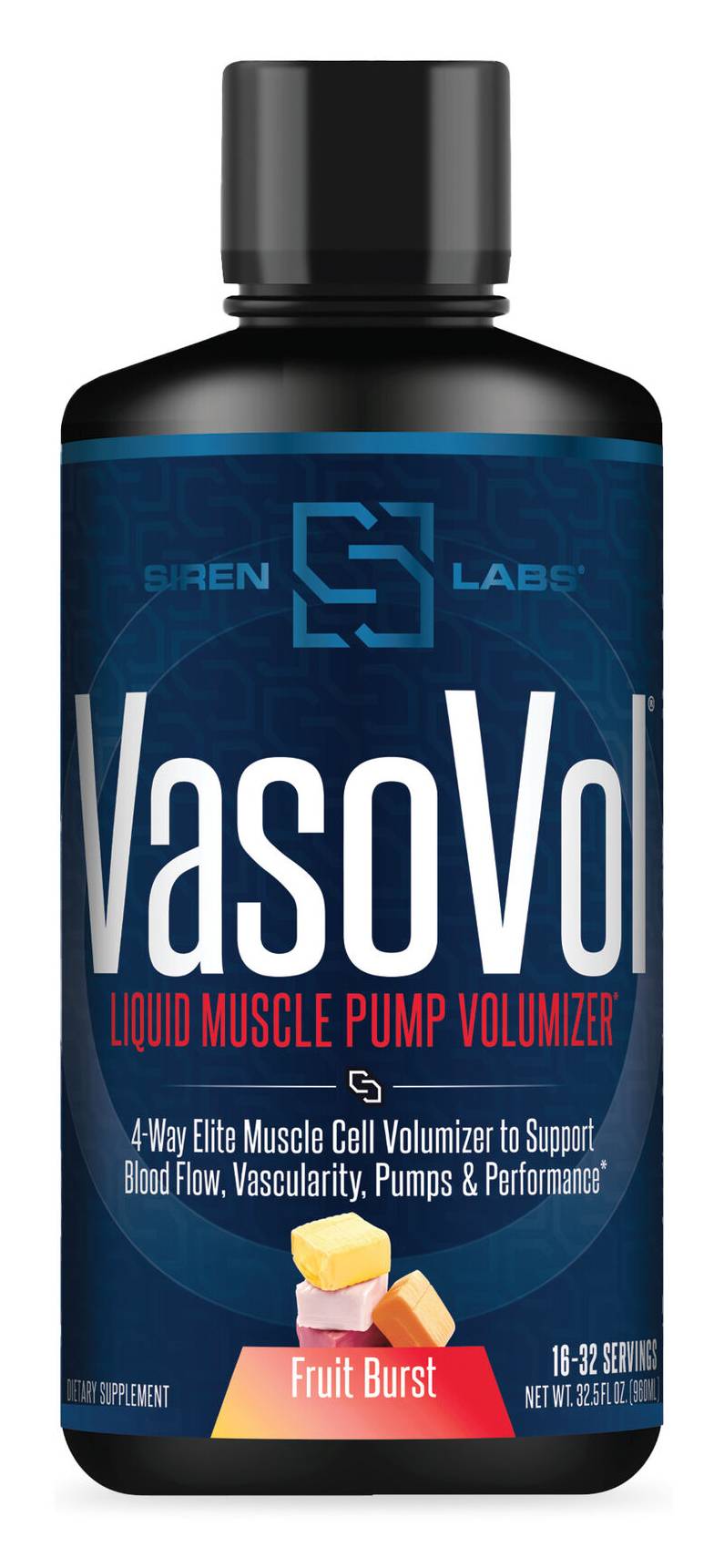 SirenLabs Vasovol Liquid Muscle Pump Volumizer, Fruit Burst (32.5 fl oz)