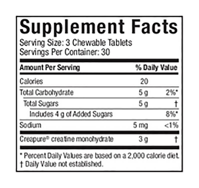 MuscleTech™ - Creatine Chews - Boogieman Punch ENHANCED PERFORMANCE WITH DELICIOUS CREATINE CHEWS▲ MuscleTech Creatine Chews are the perfect addition to your supplement stack. Each serving (3 chewable tablets) provides 3g of Creapure creatine monohydrate in a tasty and convenient candy-like chew! More Power & Recovery▲ Creatine helps to rapidly enhance your muscle cells’ ability to regenerate adenosine triphosphate (ATP), the body’s primary source of anaerobic energy. With higher ATP levels, you’ll be able to train harder and recover faster — allowing you to do more work in less time.▲ • 3g Creapure Creatine Monohydrate • 4x More Lean Muscle • Chewable Tablets • Build Lean Muscle | Boost Strength | Enhanced Performance | Amazing Taste Size: 1