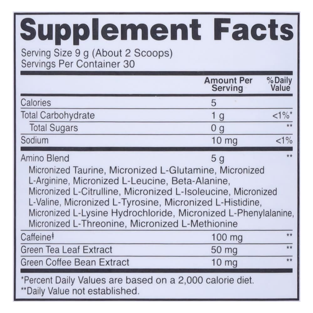 Mix two scoops of essential amino energy in 10-12 oz of cold water. recommended use: for pre-workout energy support: take 2-6 scoops 20-30 minutes before training. for post-workout amino support: at least 4 hours after initial pre-workout dose, take 2-4 scoops after training. do not exceed more than 10 scoops per day. to maximize freshness and minimize product clumping, store tightly-closed container in a cool, dry place.