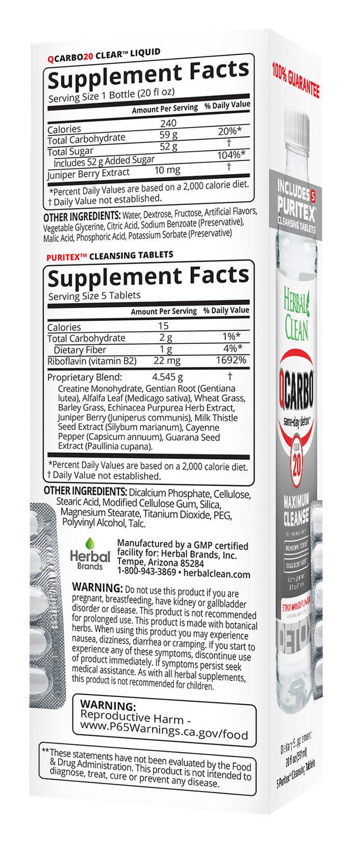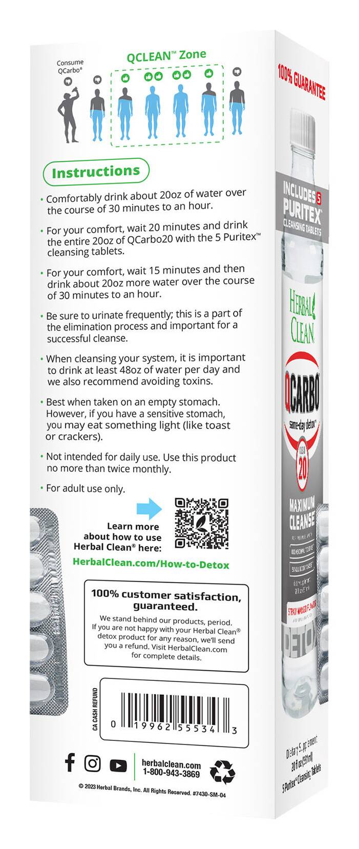 EXTREME STRENGTH CLEANSING FORMULA Specially formulated for people with higher toxin levels or larger body madd • Learn more about how to detoxify your body here: herbalclean.com/how-to-video. • When cleansing the system, it is important to drink as much water a possible on a daily basis. • avoid unwanted toxins. • Best when taken on an empty stomach; however if you have a sensitive stomach, you may eat something light (like toast). • This product is not intended for regular or daily use. • Cleansing is beneficial prior to any diet and exercise program. • Those who are serious about a cleanse use QPretox Master Concentrated Capsules prior to use of QCarbo20 CLEAR. Size: 1