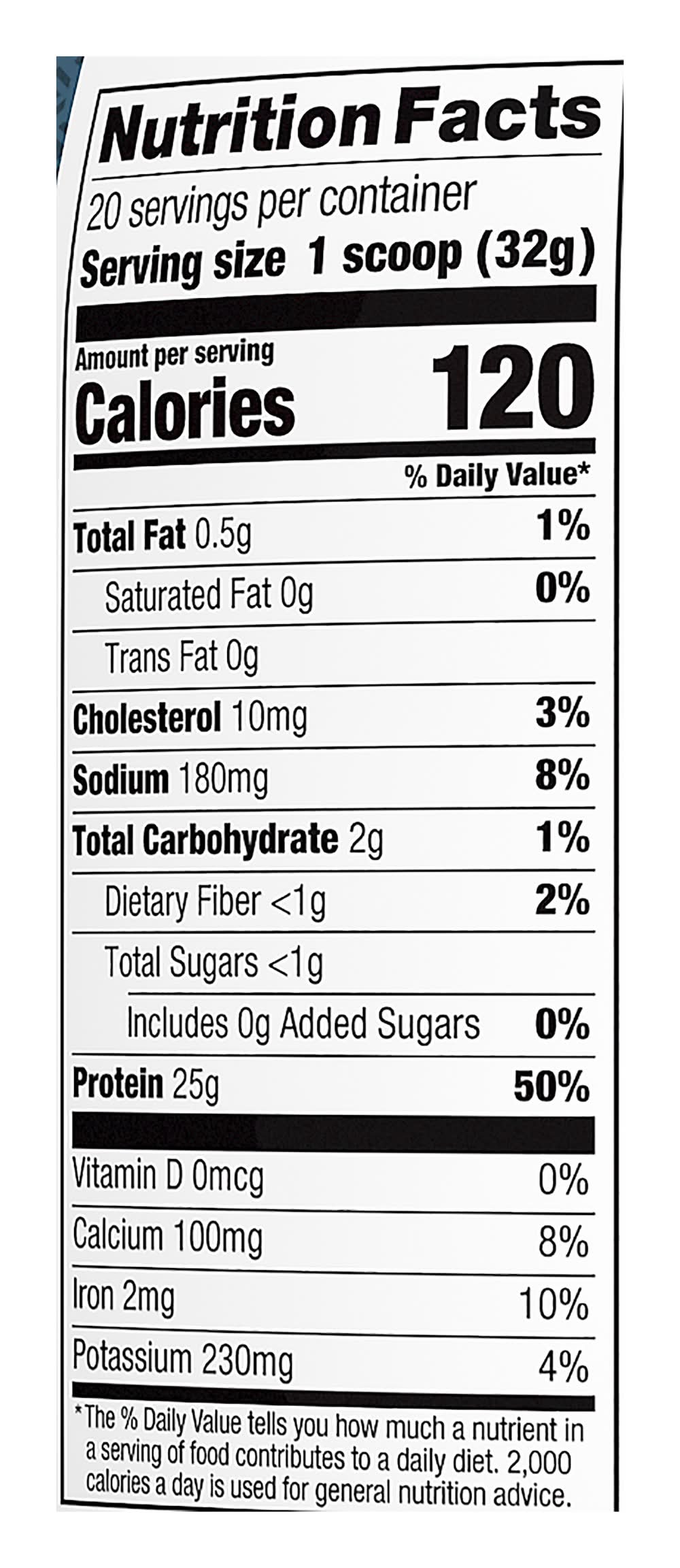 Naturally and artificially flavored. 25 g protein ; 5.5 g BCAAs; 2.6 g leucine; Gluten free. Typical amino acid profile (All amino acids are naturally occurring in protein. Amounts are based on one serving). 25 g Total amino acids per serving. 1.4 g Isoleucine. 1.4 g Valine. 47% - 11.9 g EAAs Essential Amino Acids: EAAs are necessary for supporting muscle and can only be consumed through diet. Include BCAAs. 5.5 g BCAAs Branched Chain Amino Acids 2:1:1 Ratio. 2.6 g Leucine. Importance of Leucine: Leucine is the BCAA that is directly involved in activating muscle protein synthesis. 53% - 13.4 g NON-EAAs Non-Essential Amino Acids: Our bodies produce these amino acids naturally and they are beneficial for supporting muscle. Includes conditionally essential amino acids (CEAAs). 4.4 g Glutamine (Includes glutamic acid). Importance of Glutamine: Supports muscle recovery after strenuous workouts. Contains a bioengineered food ingredient. Informed Choice. We test. You trust. Banned substance tested. 100% Whey protein isolate (100% of the protein from whey protein isolate). 20 Servings. Sold by weight not volume. Informed choice is a quality assurance program that certifies that all nutritional supplements that bear the Informed Choice logo have been regularly tested for banned substances by the world class sports anti-doping lab, LGC. Ultra-fast absorbing performance protein: ISO100 is ideal for those trying to maintain lower body fat, fuel athletic performance, and build lean muscle with a fitness or bodybuilding regimen. Dymatize, the trusted leader in athletic nutrition for over 25 years, brings you ISO100 Hydrolyzed, 100% whey protein isolate (100% of the protein from whey protein isolate). Each ultra-fast absorbing and easy digesting serving is scientifically formulated to deliver the protein and amino acids you need for next-level muscle recovery and performance. Engineered to crush goals: Building muscle (With a fitness or bodybuilding regimen); Muscle recovery (With a fitness or bodybuilding regimen); Muscle maintenance (With a fitness or bodybuilding regiman). Best times to use: 0-30 mins. Before training; 0-30 mins. After training. The science behind the scoop: Multi-step purification: Fat; sugar; lactose; whey protein isolate. ISO100’s proteins are filtered to remove excess carbs, cholesterol, fat, sugar and lactose. Hydrolyzed=Ultra-Fast absorbing: ISO100’s Hydrolyzed whey protein isolate is broken down into smaller protein molecules (peptides). Super easy mixing: Mixes completely, even if you use a cup and spoon! Tested for purity & banned substance tested: Our products are banned substance tested and rigorously tested for quality and purity. dymatize.com. Instagram. Facebook. Tiktok. Inspiration. Recipes. Training Tips. For full amino acid profile, Unzip & remove sleeve to recycle bottle. Dymatize born in the USA • Flavor: Cocoa pebbles • Size: 1 • Packaging: Reusable