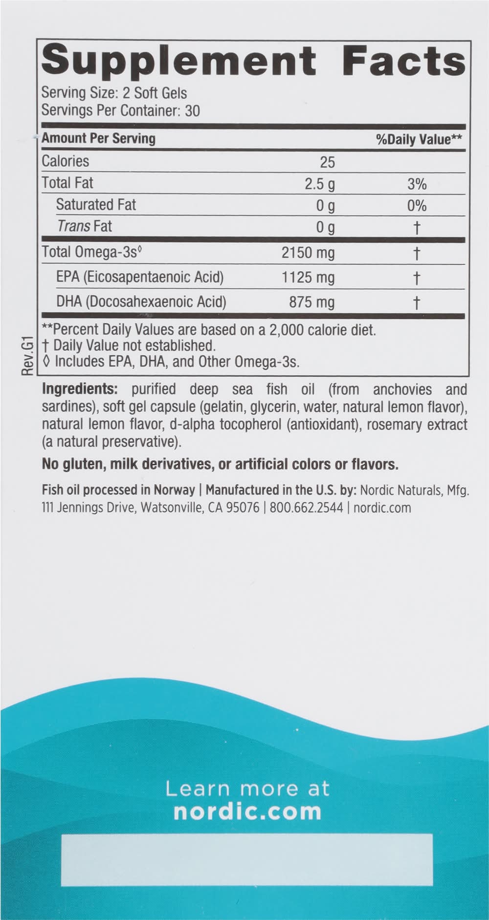 Nordic Naturals Ultimate Omega Fish Oil 2150 mg Soft Gels, Lemon (6.4 oz, 60 ct)