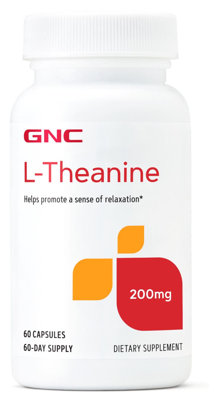 GNC L-Theanine 200mg: Promotes Relaxation* GNC L-Theanine 200mg is a dietary supplement that can help enhance relaxation. L-Theanine is an amino acid derived from black, white and especially green tea leaves. Just take one 200mg softgel capsule of GNC L-Theanine 200mg daily to remain calm and relaxed.* • Brings relief from daily life* • Offers calming support for PMS* • Helps promote a sense of relaxation to cope with stress from everyday overwork and fatigue* • Supports a restful, relaxed state*