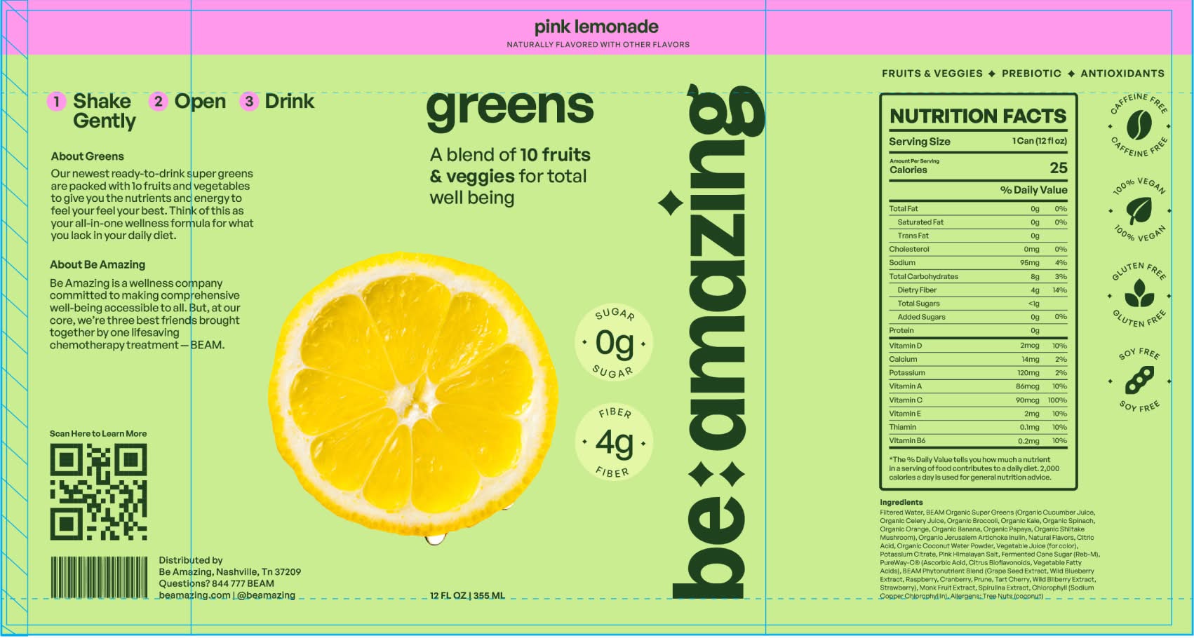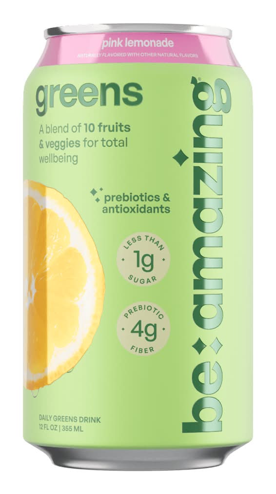Be Amazing Daily Greens Drink With Prebiotics & Antioxidants, Pink Lemonade (8 x 12 fl oz)