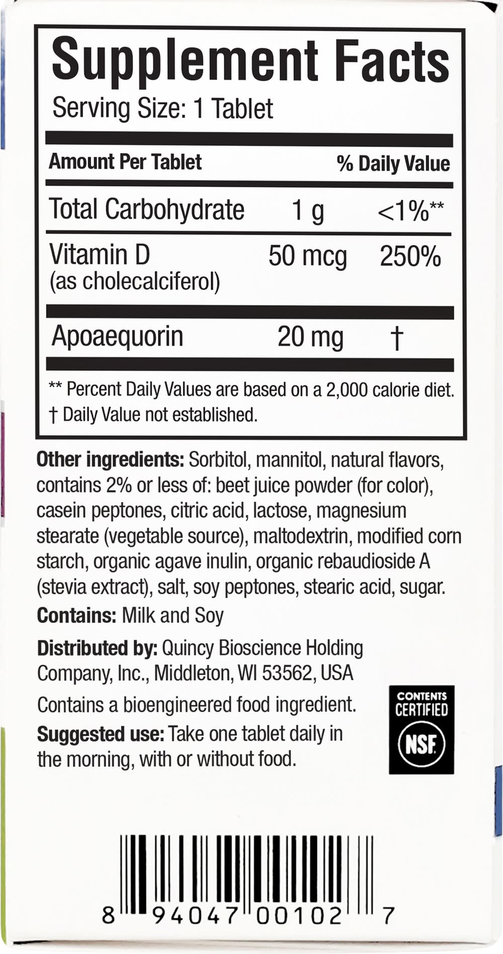 For Your Brain, Extra Strength, Chewables, Tablets • Quincy Bioscience, Madison, WI, 53717, Ph: 888-565-5385 • Packaging: Reusable