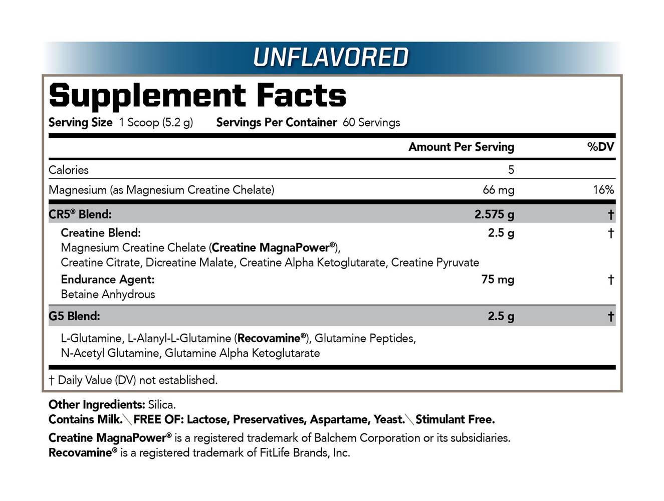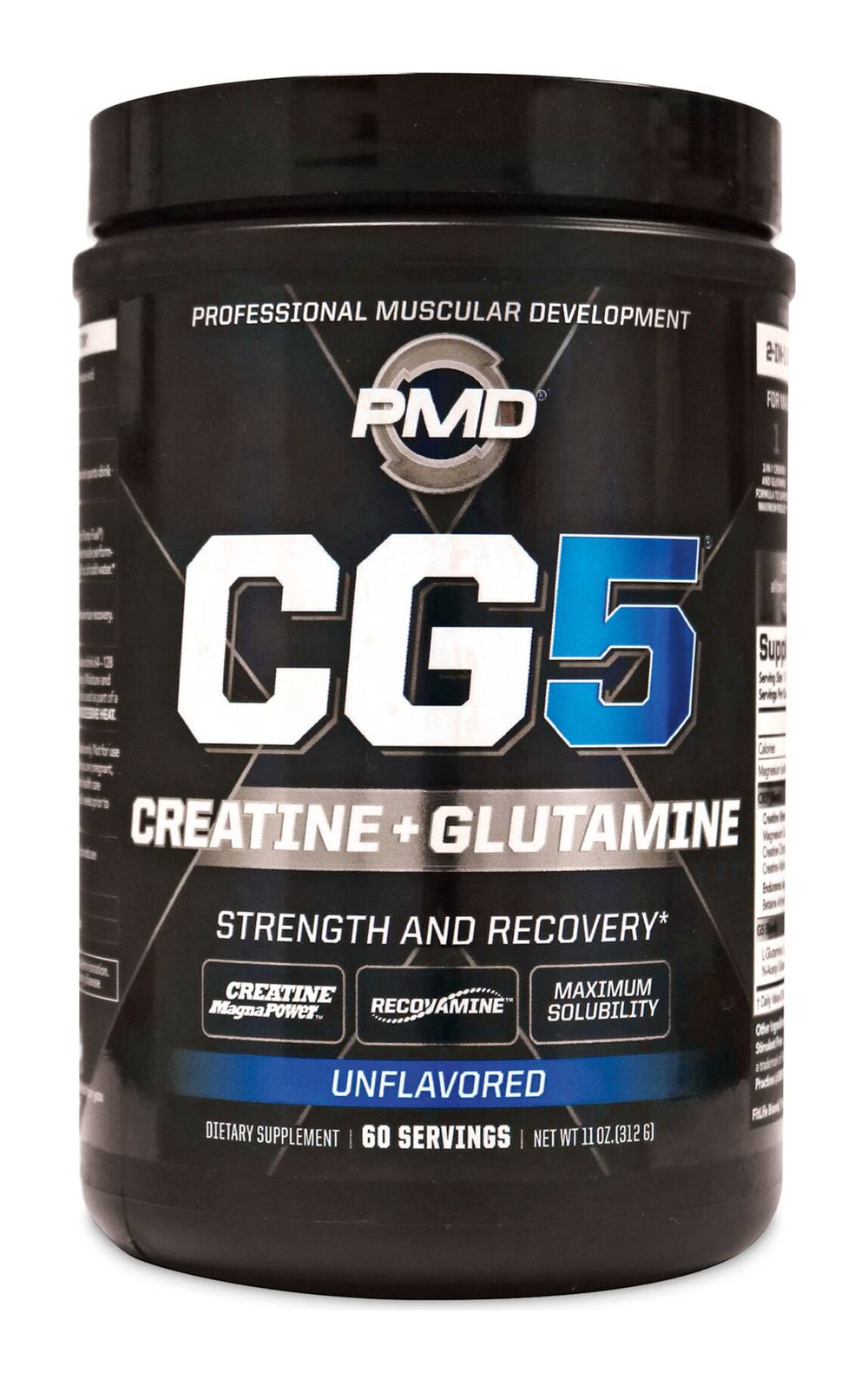 PMD CG5 - Unflavored: Strength and Recovery Support* PMD CG5 offers support for lean muscle mass, increased strength, greater muscle performance, and quick recovery.* This formula features Creatine MagnaPower, Sustamine, and Maximum Solubility. Highly soluble for maximum absorption.* CG5 is a 2-in-1 creatine and glutamine formula for maximum uptake, performance, and recovery! • Free of: lactose, preservatives, aspartame, yeast • 60 servings • Unflavored *These statements have not been evaluated by the Food and Drug Administration. This product is not intended to diagnose, treat, cure, or prevent any disease. Size: 1