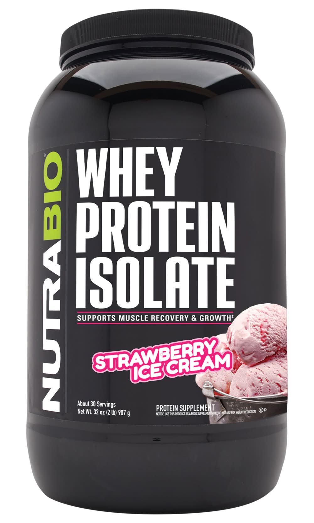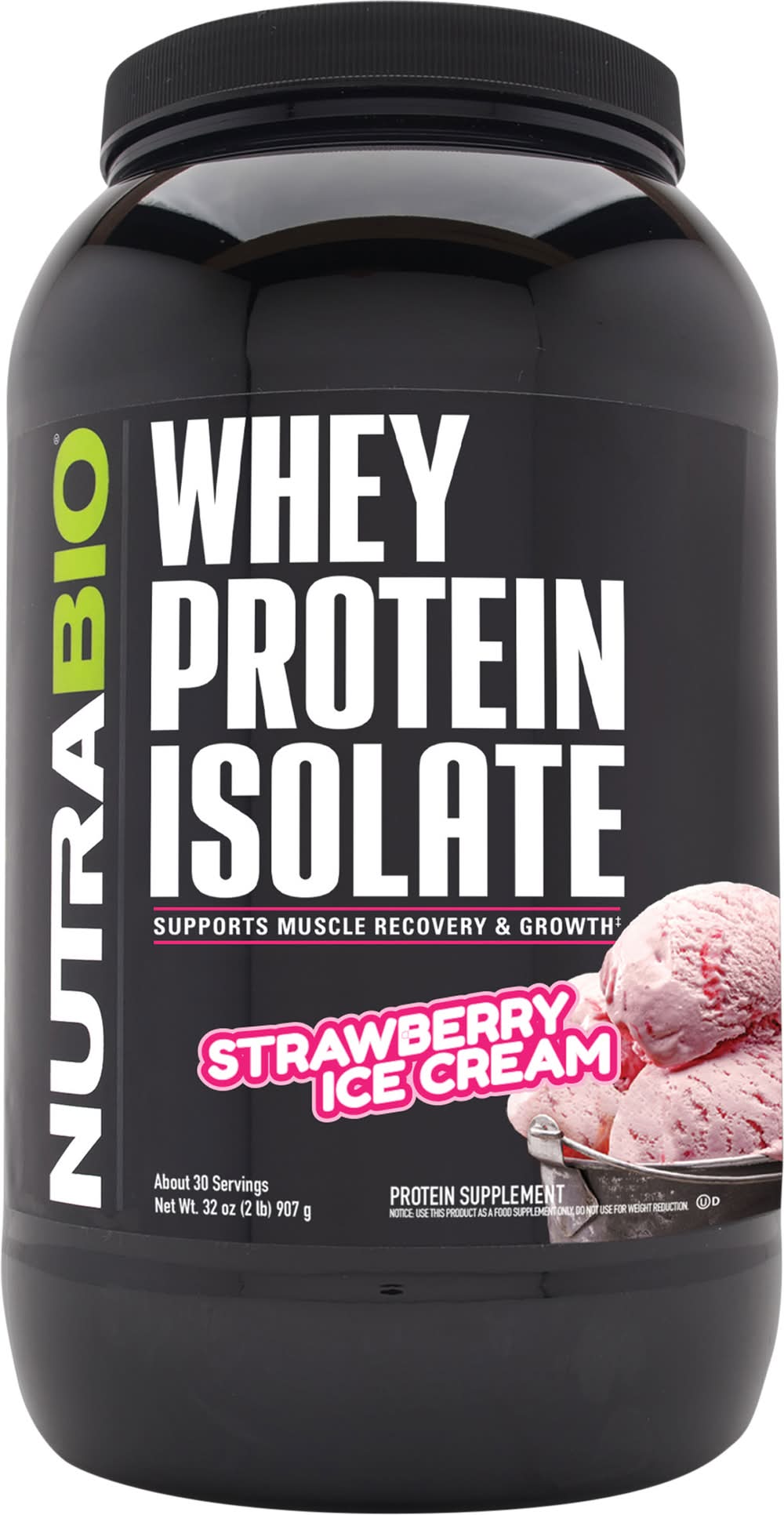 NutraBio Whey Protein Isolate Supplement, Strawberry Ice Cream (32 oz)