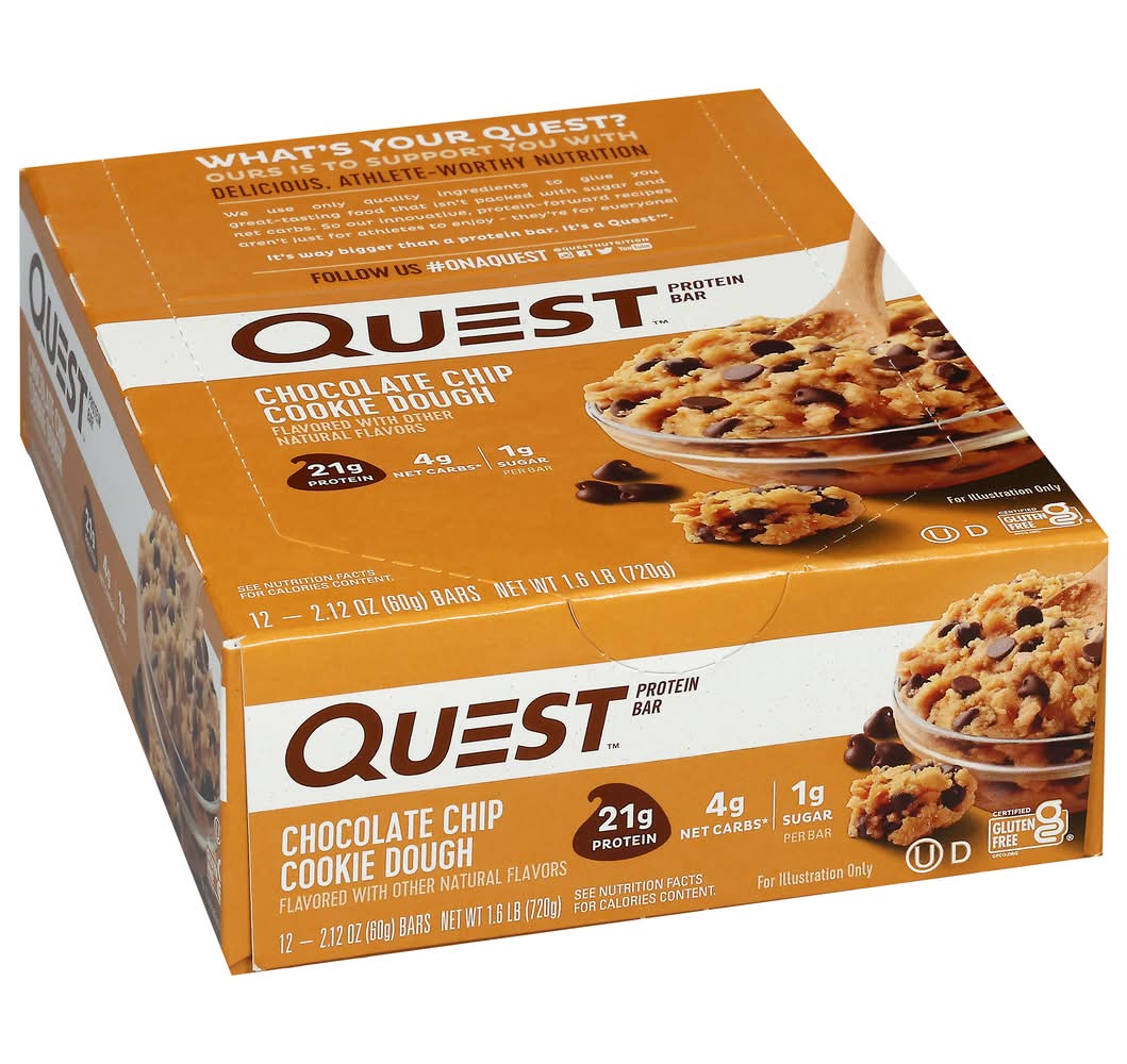 Quest Flavor Protein Bar, Chocolate Chip Cookie Dough (12 x 2.12 oz)