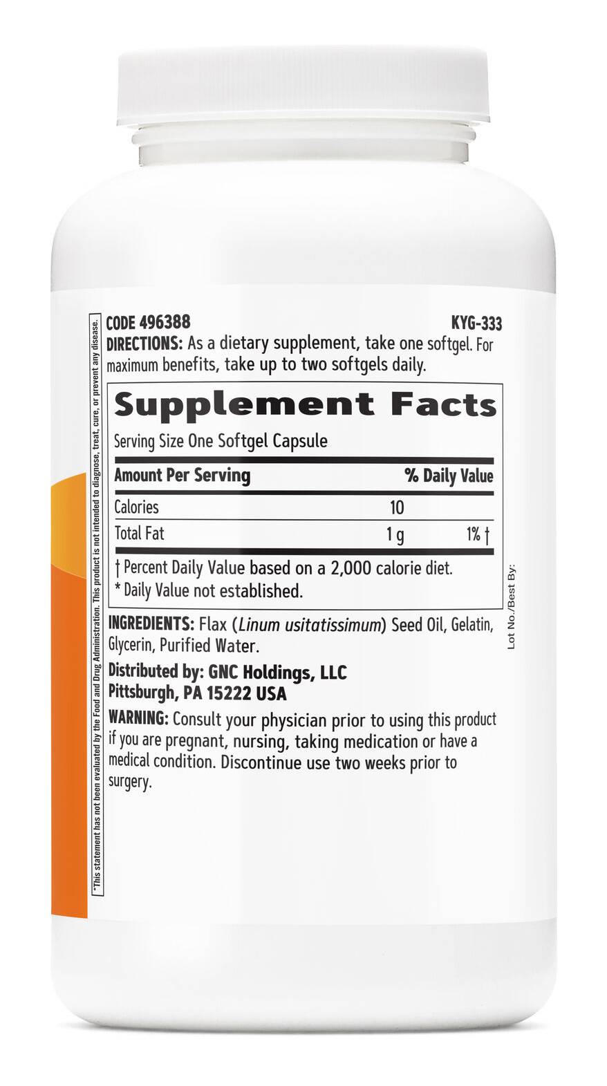 GNC Select™ - Flax Seed Oil 1000mg - 180 Softgels • Omega-3 fatty acids help support the cardiovascular system, digestive health and joint health* • Preservative Free • No Artificial Colors or Flavors