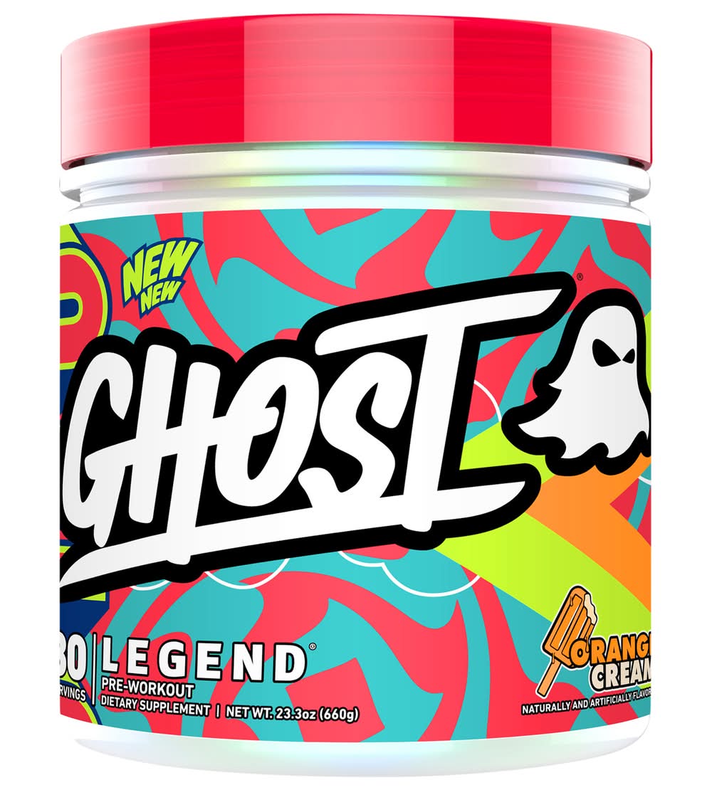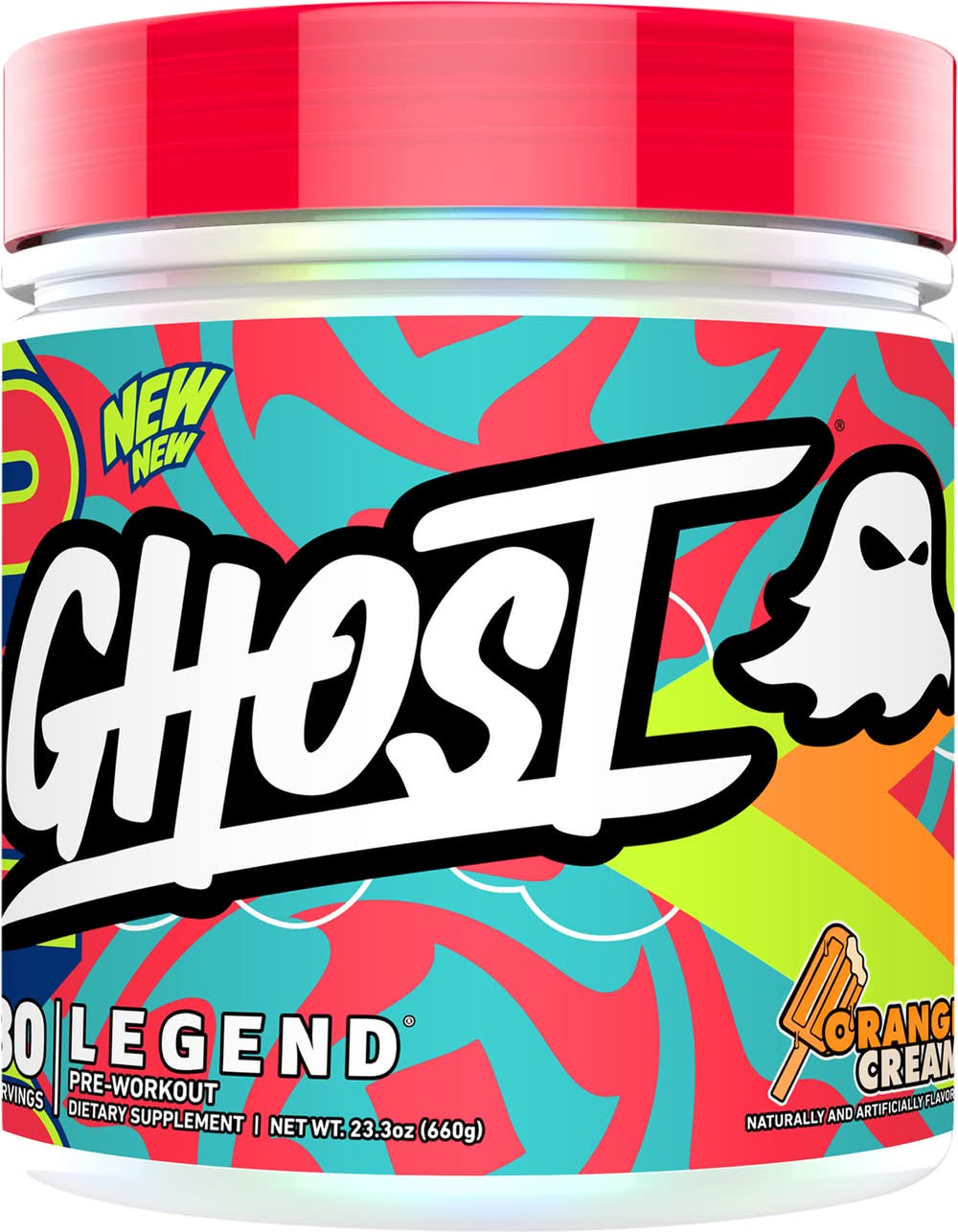 Dietary Supplement. Naturally and artificially flavored. Vegan friendly. Gluten free. Soy free. Sugar free. New. Ghost legend was conceived to power legendry in all of its forms. Fitness. Sport. Party. Energy. Contents sold by weight not volume, some settling may occur. Our scoop's always on top. The patented ghost nested scoop ensures you never go digging for your scoop again. • Flavor: Orange cream • Size: 1