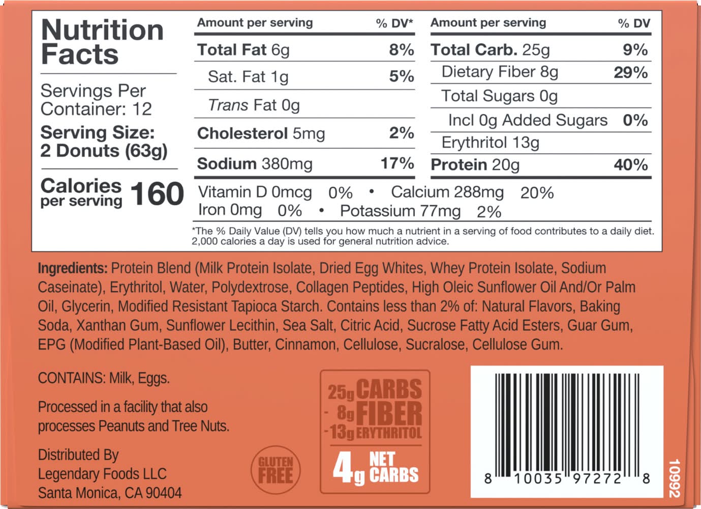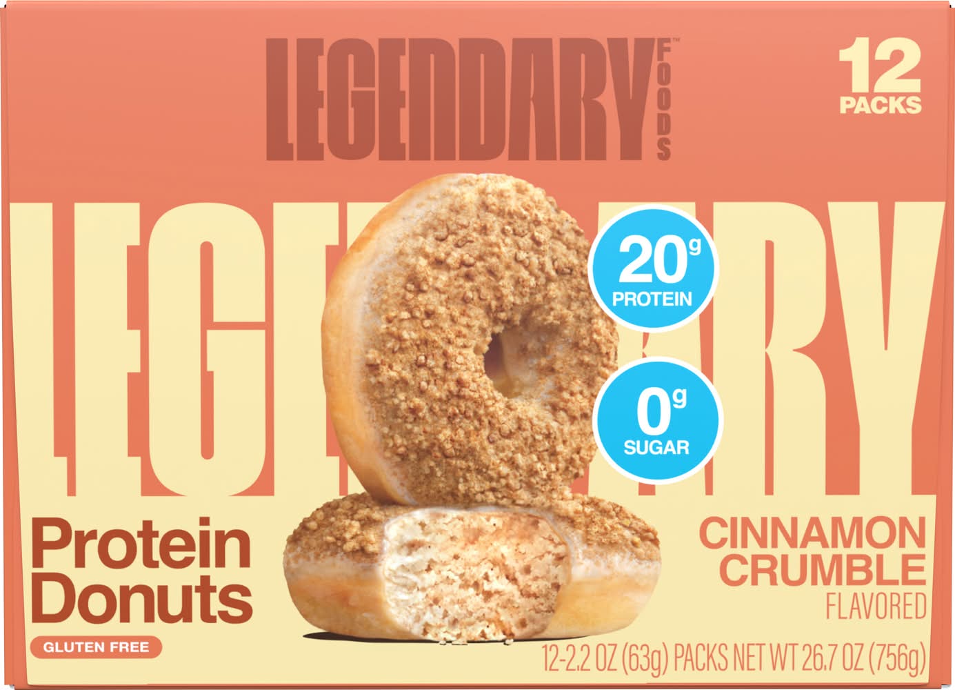 Gluten Free Cinnamon Crumble Protein Donuts • Flavor: Cinnamon crumble • Pack size: 12 • Size: 1 • Legendary Foods LLC, 2601 Colorado Ave Santa Monica, CA 90404
