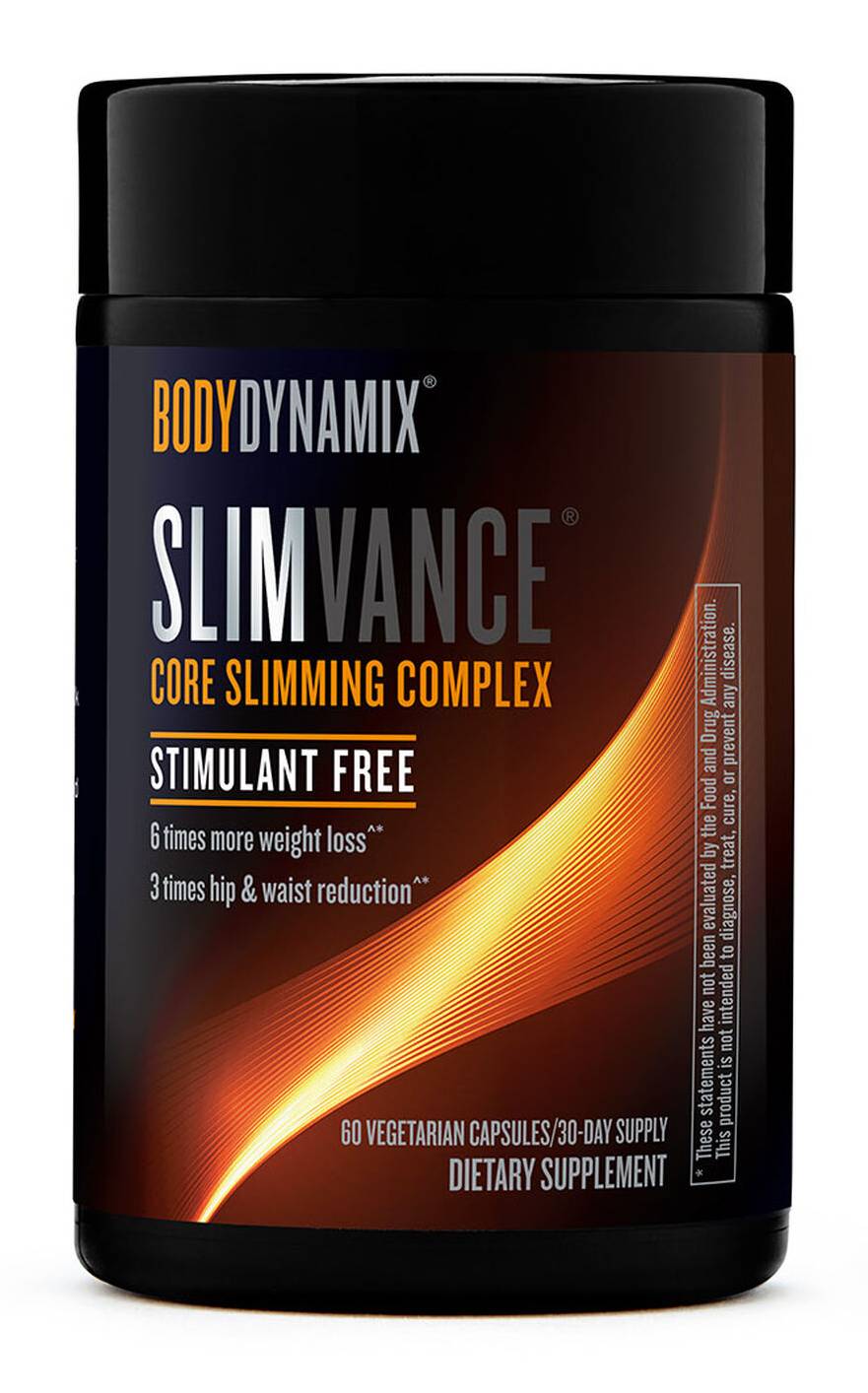 BodyDynamix® Slimvance® Core Slimming Complex Stimulant Free: SLIMVANCE Lose More Weight Without Using Stimulants^◊*. Transformational weight loss isn’t something you need to wait for. Start achieving the results you’re looking for within only 16 weeks—and without the caffeine that’s in so many weight loss products. Slimvance® is a patented, herbal blend that promotes healthy weight loss and helps people shed pounds and inches from problem core areas^◊*. ^A randomized clinical study of 140 healthy overweight people compared the use of Slimvance® in conjunction with an 1800 calorie diet and walking plan to a placebo with the same diet and walking plan. Those on Slimvance® lost 3 more pounds (-3.7 pounds versus -0.6 pounds) than the placebo group after 4 weeks, 5 more pounds (-6.1 pounds versus -1.07 pounds) than the placebo group after 8 weeks, 7.4 more pounds (-8.88 pounds versus -1.47 pounds) than the placebo group after 12 weeks, almost 10 more pounds (-11.81 pounds vs. -1.91 pounds), lost over an inch more around the hips (-1.76 inches vs. -0.48 inches) and lost over an inch more around the waist (-2.12 inches vs. -0.68 inches) than the placebo group after 16 weeks. ◊Use in conjunction with the Slimvance® diet and exercise program. ‡ Individual was remunerated. Results not typical. Typical Slimvance® users lost 5 more pounds and 1.03 more inches in their waist, and 0.99 more inches in their hips over 8 weeks compared to the placebo group. Both groups used an 1800 calorie diet and exercise plan. *These statements have not been evaluated by the Food and Drug Administration. This product is not intended to diagnose, treat, cure, or prevent any disease.