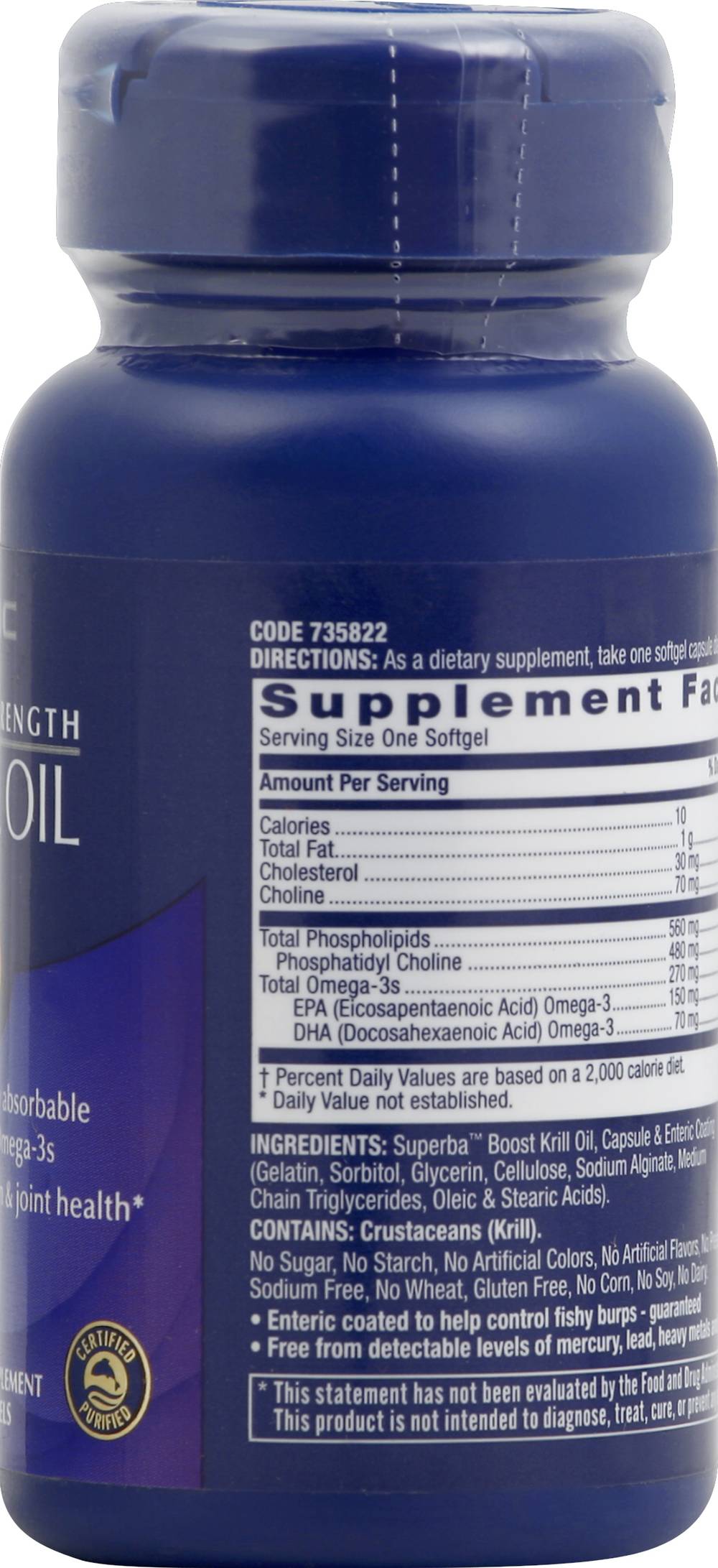 Ingredients: Superba Boost Krill Oil, Capsule & Enteric Coating (Gelatin Sorbitol Glycerin Cellulose Sodium Alginate Medium Chain Triglycerides Oleic & Stearic Acids) Contains: 'Free From Milk', 'Free From Soybeans', 'Free From Wheat', 'Free From Gluten'