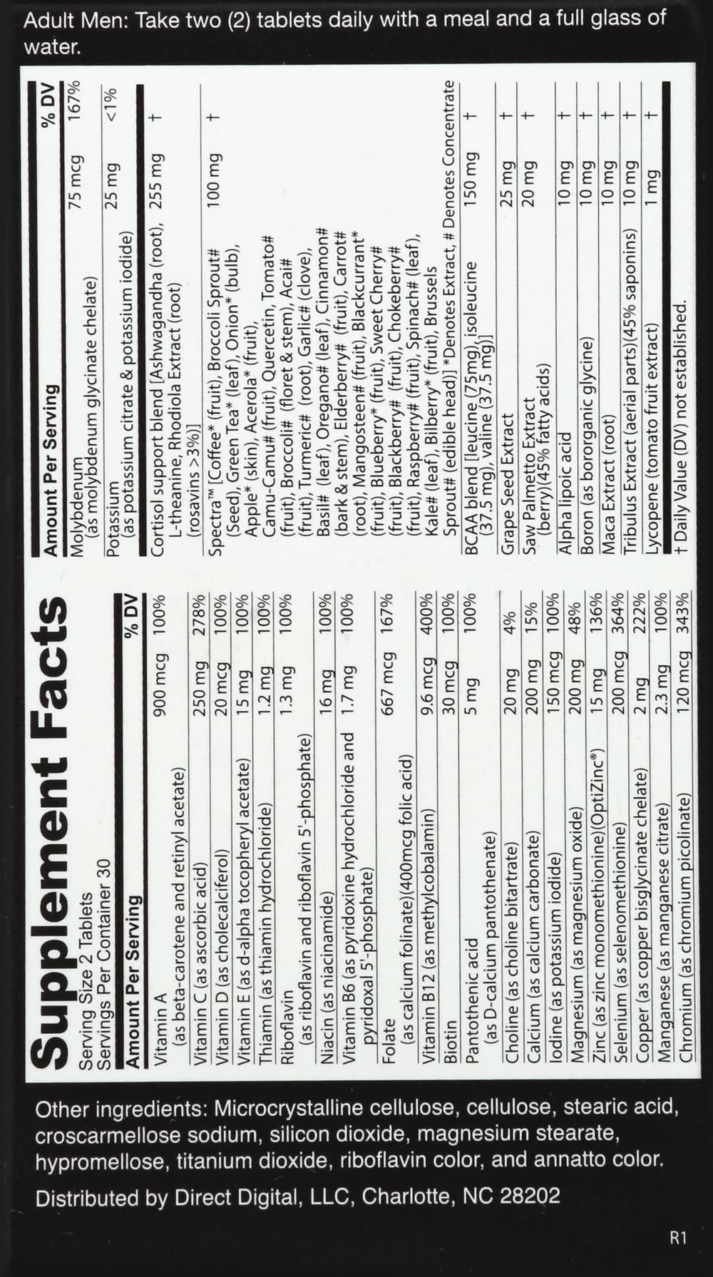 Ingredients: Spectra [Coffee (Denotes Extract) (Fruit), Broccoli Sprout (Denotes Concentrate) (Seed), Green Tea (Denotes Extract) (Leaf), Onion (Denotes Extract) (Bulb), Apple (Denotes Extract) (Skin), Acerola (Denotes Extract) (Fruit), Camu-Camu (Denotes Concentrate) (Fruit), Quercetin, Tomato (Denotes Concentrate) (Fruit), Broccoli (Denotes Concentrate) (Floret & Stem), Acai (Denotes Concentrate) (Fruit), Turmeric (Denotes Concentrate) (Root), Garlic (Denotes Concentrate) (Clove), Basil (Denotes Concentrate) (Leaf), Oregano (Denotes Concentrate) (Leaf), Cinnamon (Denotes Concentrate) (Bark & Stem), Elderberry (Denotes Concentrate) (Fruit), Carrot (Denotes Concentrate) (Root), Mangosteen (Denotes Concentrate) (Fruit), Blackcurrant (Denotes Extract) (Fruit), Blueberry (Denotes Extract) (Fruit), Sweet Cherry (Denotes Concentrate) (Fruit), Blackberry (Denotes Concentrate) (Fruit), Chokeberry (Denotes Concentrate) (Fruit), Raspberry (Denotes Concentrate) (Fruit), Spinach (Denotes Concentrate) (Leaf), Kale (Denotes Concentrate) (Leaf), Bilberry (Denotes Extract) (Fruit), Brussels Sprout (Denotes Concentrate) (Edible Head)]. Other Ingredients: Microcrystalline Cellulose, Cellulose, Stearic Acid, Croscarmellose Sodium, Silicon Dioxide, Magnesium Stearate, Hypromellose, Titanium Dioxide, Riboflavin Color, and Annatto Color.