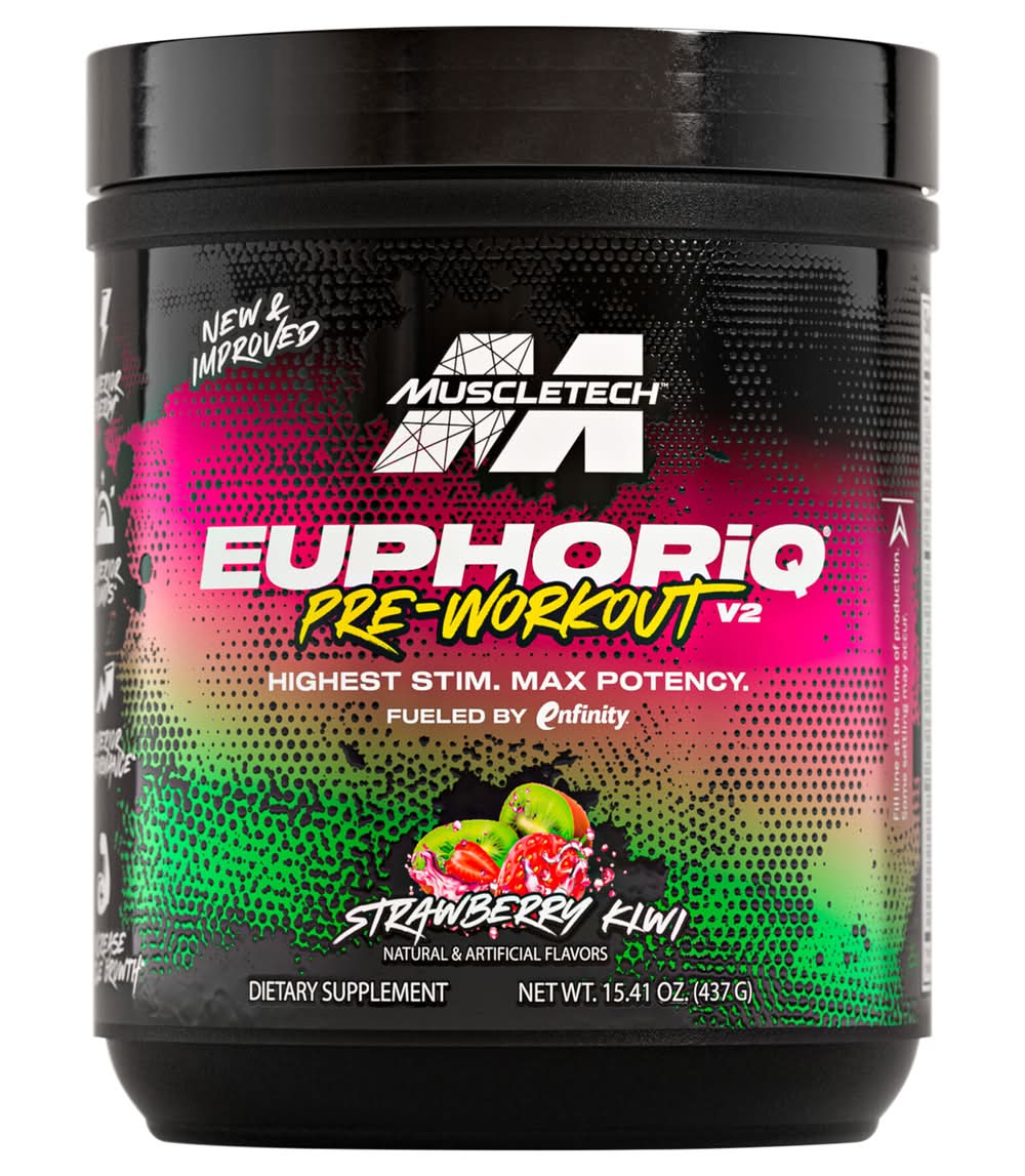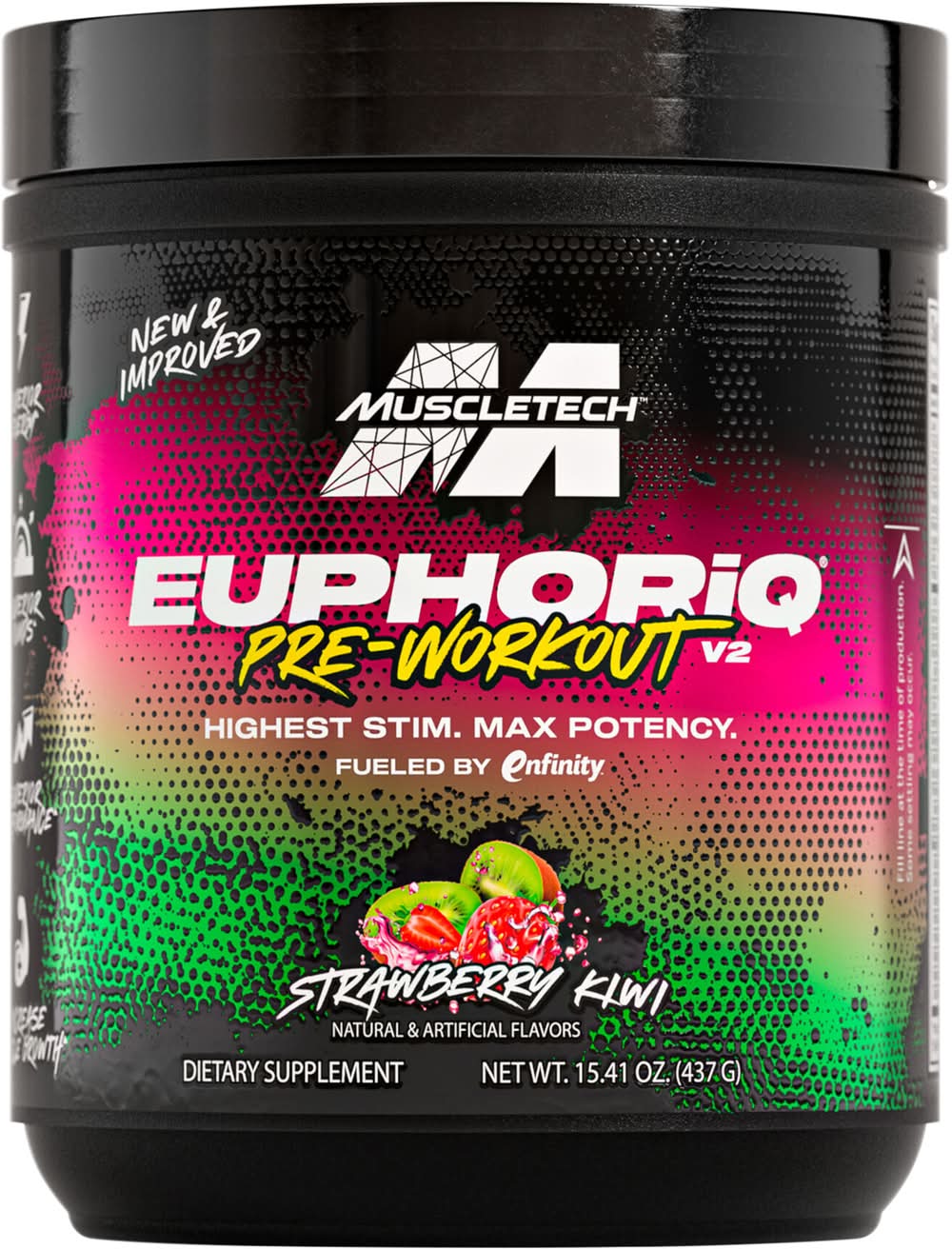 MuscleTech Euphoriq Pre-Workout V2 Supplement Powder, Strawberry Kiwi (15.41 oz)