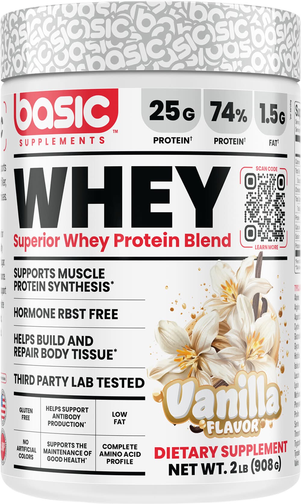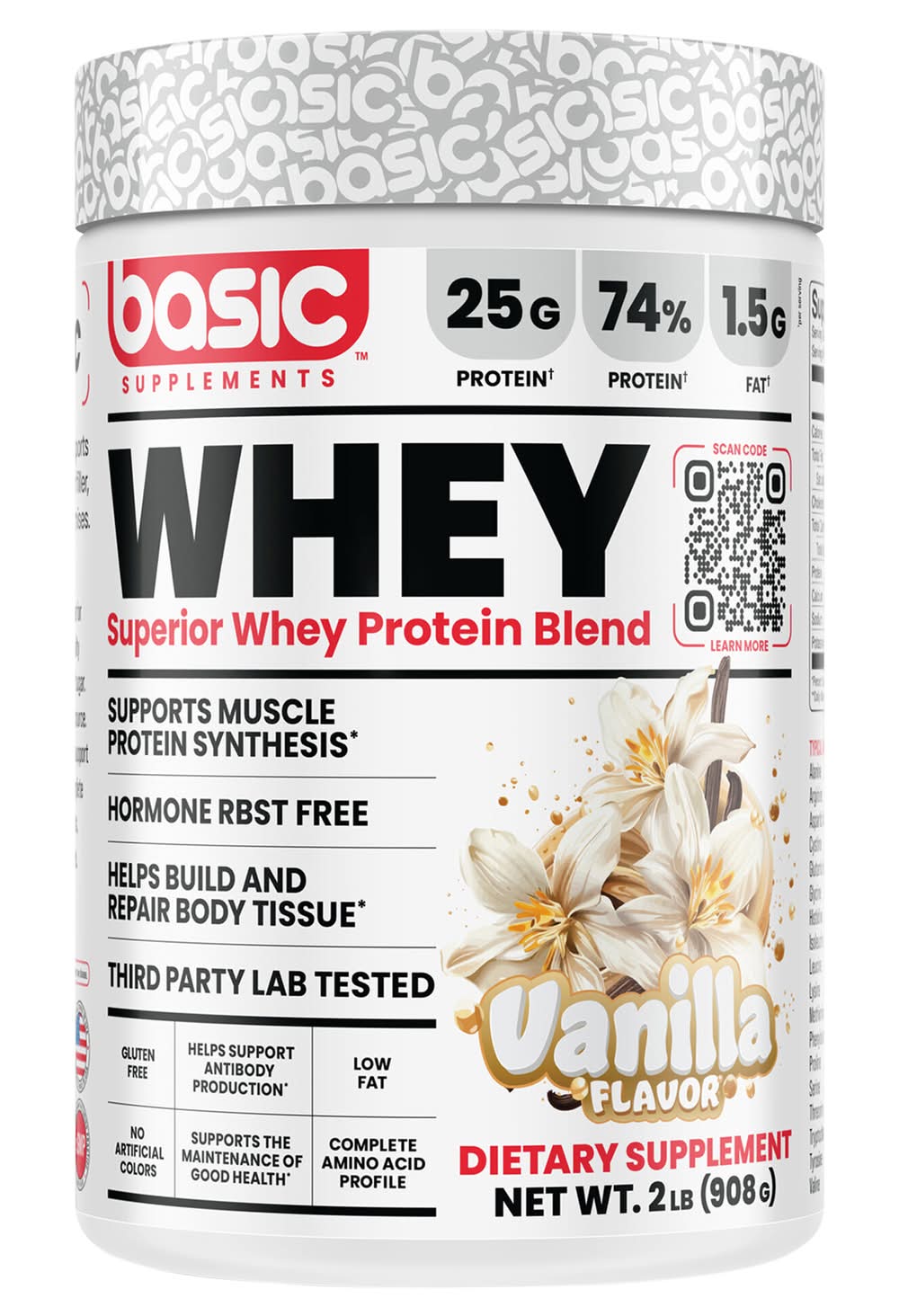 Basic Superior Whey Protein Blend Powder, Vanilla (2 lbs)