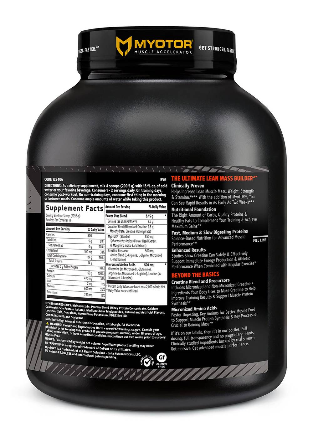 GNC AMP Mass XXX™ with MyoTor® - Strawberry: Increase Lean Muscle Mass with 40% Fewer Sets▀* • CLINICALLY PROVEN STRENGTH AND MASS GAINER: GNC AMP Mass XXX™ mass gainer combines high-quality protein powder, key nutrients, and science-backed innovations—including MyoTOR®, creatine, and BETAPOWER®—to fuel proven results and performance^▪*. • INCREASE LEAN MUSCLE MASS WITH 40% FEWER SETS: Mass XXX’s macronutrient blend delivers 50g of protein, including naturally occurring EAAs, plus carbs, and healthy fats—and it’s clinically proven to help get better results out of workouts▪*. • IMPROVE MUSCLE STRENGTH IN AS EARLY AS 2 WEEKS: MyoTOR is clinically proven to accelerate improvements in strength with as little as 2 weeks of training and included in every serving of Mass XXX mass gainer•⬩*. • ENHANCED FOR IMPROVED STRENGTH AND STAMINA: Take resistance training to a new limit with MyoTOR’s clinically studied support for improved muscle endurance and BETAPOWER’s athletic performance benefits•⬩*. • BANNED SUBSTANCE TESTED: Unlike most mass gainers with proprietary blends, Mass XXX is certified Banned Substance Tested and formulated to help you gain mass without compromising your goals*⬦. ■In an eight-week, randomized, double-blind, placebo-controlled study of healthy male volunteers, 18 subjects completed 3 sets of resistance training (RT) daily + the macronutrient blend in Mass XXX™, and 16 subjects performed 5 sets RT daily with no supplement. After eight weeks, subjects on the supplement showed equal gains in body weight, fat free mass (FFM), maximal muscle strength (MMS) and muscle endurance (ME) with only 3 sets RT per day compared to the control group who completed 5 sets RT per day. ^When used in conjunction with an exercise program. •In a 8-week randomized, double-blinded, placebo-controlled study of 118 healthy men participating in a supervised resistance training program showed that those taking MyoTOR® had significant increase in upper body strength (49.7 lb. vs. 19 lb.), mean lower body strength (42.1 lb. vs. 19,2 lb.) and muscle endurance after 8 weeks vs. those who took the placebo with the same exercise. Improvements in strength were seen in as early as 2 weeks. Men on MyoTOR® had greater improvements in muscle strength and upper body endurance vs. those who took a placebo but exercised twice as much. ⬩An 8-week randomized, double blind, placebo-controlled study of 40 healthy men participating in a voluntary exercise routine showed that those taking MyoTOR® had significant improvements in upper and lower body strength, muscle endurance, arm circumference and lean body mass vs. those on a placebo after 8 weeks Improvements in strength were seen in as early as 2 weeks. *These statements have not been evaluated by the Food and Drug Administration. This product is not intended to diagnose, treat, cure, or prevent any disease. ⬦Product was tested for over 220 banned substances on the 2020 World Anti-Doping Agency (WADA) Prohibited List via LGC skip lot testing protocol #ICP0307. • Flavor: Strawberry • Size: 1
