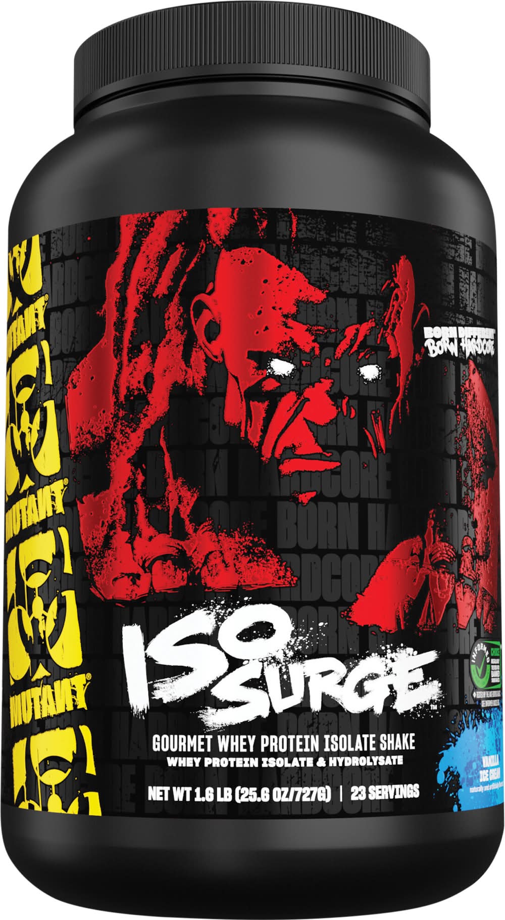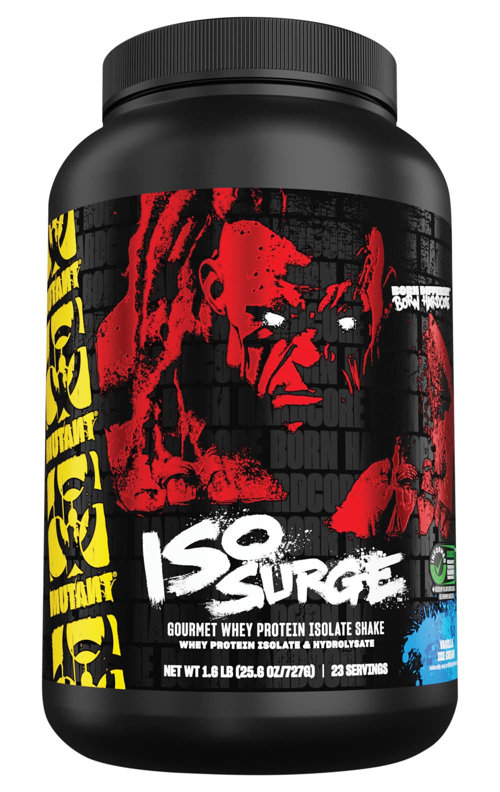 Gourmet whey protein isolate shake. Whey protein isolate & hydrolysate. Naturally and artificially flavored. Typical Amino Acids per Serving: Total 25 g: Leucine (Essential Amino Acids) BCAAs (Branched-Chain Amino Acids) (BCAA) 2.7 g; Isoleucine (Essential Amino Acids) (BCAAs (Branched-Chain Amino Acids) (BCAA) 1.5 g; Valine (Essential Amino Acids) (BCAA (Branched-Chain Amino Acids) (BCAA) 1.3 g; Histidine (Essential Amino Acids) 0.4 g; Lysine (Essential Amino Acids) 2.6 g; Methionine (Essential Amino Acids) 0.5 g; Phenylalanine (Essential Amino Acids) 0.7 g; Threonine (Essential Amino Acids) 1.6 g; Tryptophan (Essential Amino Acids) 0.4 g; Glutamine + Glutamic Acid 4.6 g; Arginine 0.6 g; Alanine 1.3 g; Aspartic Acid 2.6 g; Cystine 0.6 g; Glycine 0.4 g; Proline 1.5 g; Serine 1.0 g; Tyrosine 0.7 g, the Tryptophan in this product is naturally occurring in whey protein, no other tryptophan is added, values are approximate and are subject to natural variation. Born different. Born hardcore. Destroy. Feed. Rebuild. We won't insult your intelligence with out-of-touch marketing department fk'boy double-speak or bs promises. So, if you're reading this, you know why you need top-tier protein to feed damaged muscle - and why whey isolate is the alpha of all proteins. Your Job: Destroy muscle. Feed Muscle. Rebuild muscle. (Rich in protein. Protein helps your body build and repair cells and tissues). Repeat until swole af. Iso surge makes it simple and, most of all. Epically delicious. No fk'boy double-speak there. What you need to know: Fast-digesting whey protein isolate & hydrolysate. Mixes easy - if you like that kind of thing. Legendary gourmet flavor that'll rock ur dome. Now stop reading this, and get back in the gym. Mutant Name: Sergio forse. Skill: Determination & sheer will. Threat Level: 9.25. Perk: Mastered art of muscle growth (Rich in protein. Protein helps your body build and repair cells and tissues). Proportions indicated are subject to change. Packed by weight, not by volume, settling of powder occurs after packaging. True Protein Tested: Samples from various lots of mutant ISO Surge are randomly tested for true bound protein levels. No Hidden Ingredients: Each formula ingredient is disclosed -what's on the label is in the formula. Mutant: Mutant powers the hardcore, the freaks, the mass monsters & the obsessed. Once you're on of us there's no going back! Informed we test - you trust. Choice regularly tested for banned substances. Tested by the Anti-doping lab LGC. See informed-choice.org. Mutantnation.com. SmartLabel: Scan for more product info. Youtube. Instagram. Facebook. Tiktok. (at)mutantnation. support(at)mutantnation.com; USA: 1-844-4MUTANT/ INT: +1-604-464-3524. Product of Canada. • Flavor: Vanilla ice cream • Size: 1