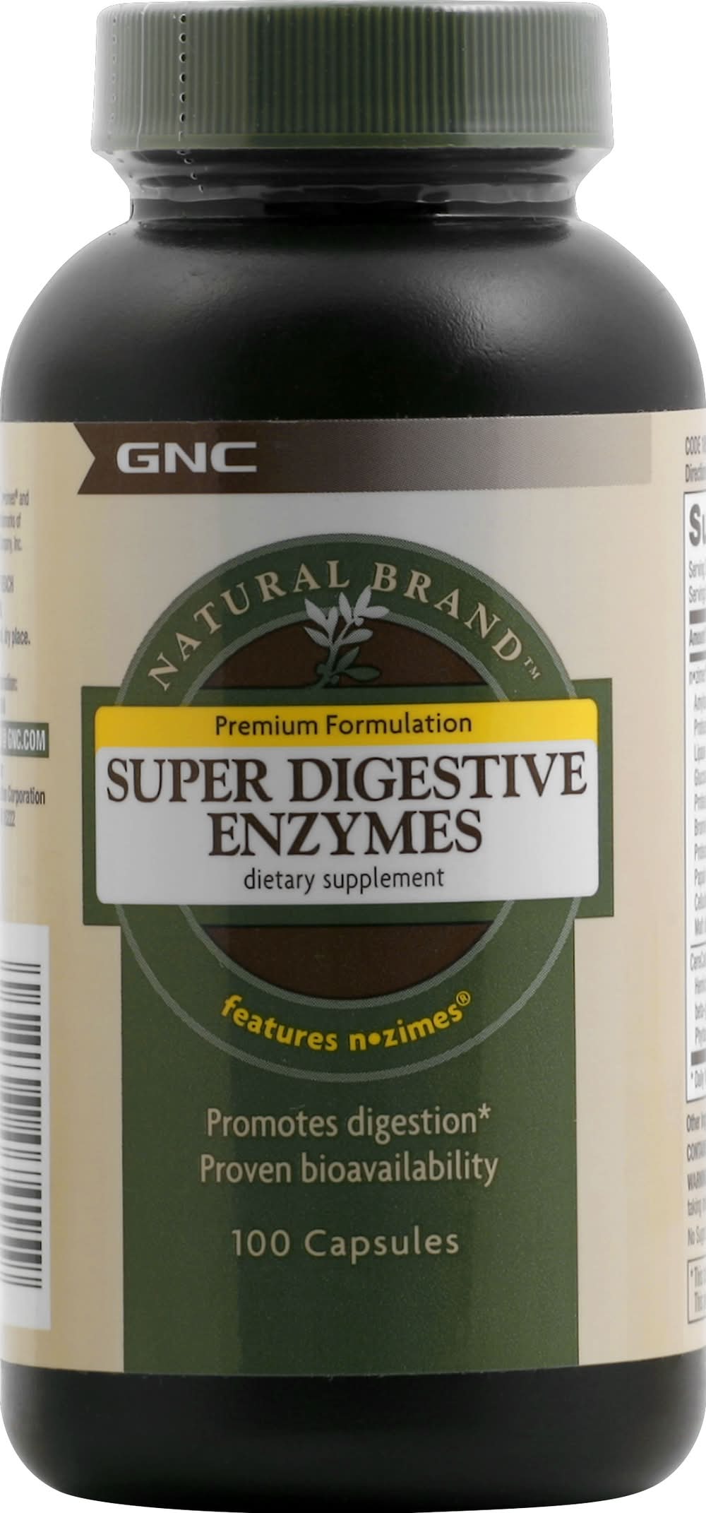 Features nzimes. Promotes digestion. Proven bioavailability. For More Information: 1-888-462-2548. No sugar, no artificial colors, no artificial flavors, sodium free, yeast free. Shop now (at) gnc.com. (This statement has not been evaluated by the Food and Drug Administration. This product is not intended to diagnose, treat, cure, or prevent any disease.) Size: 1