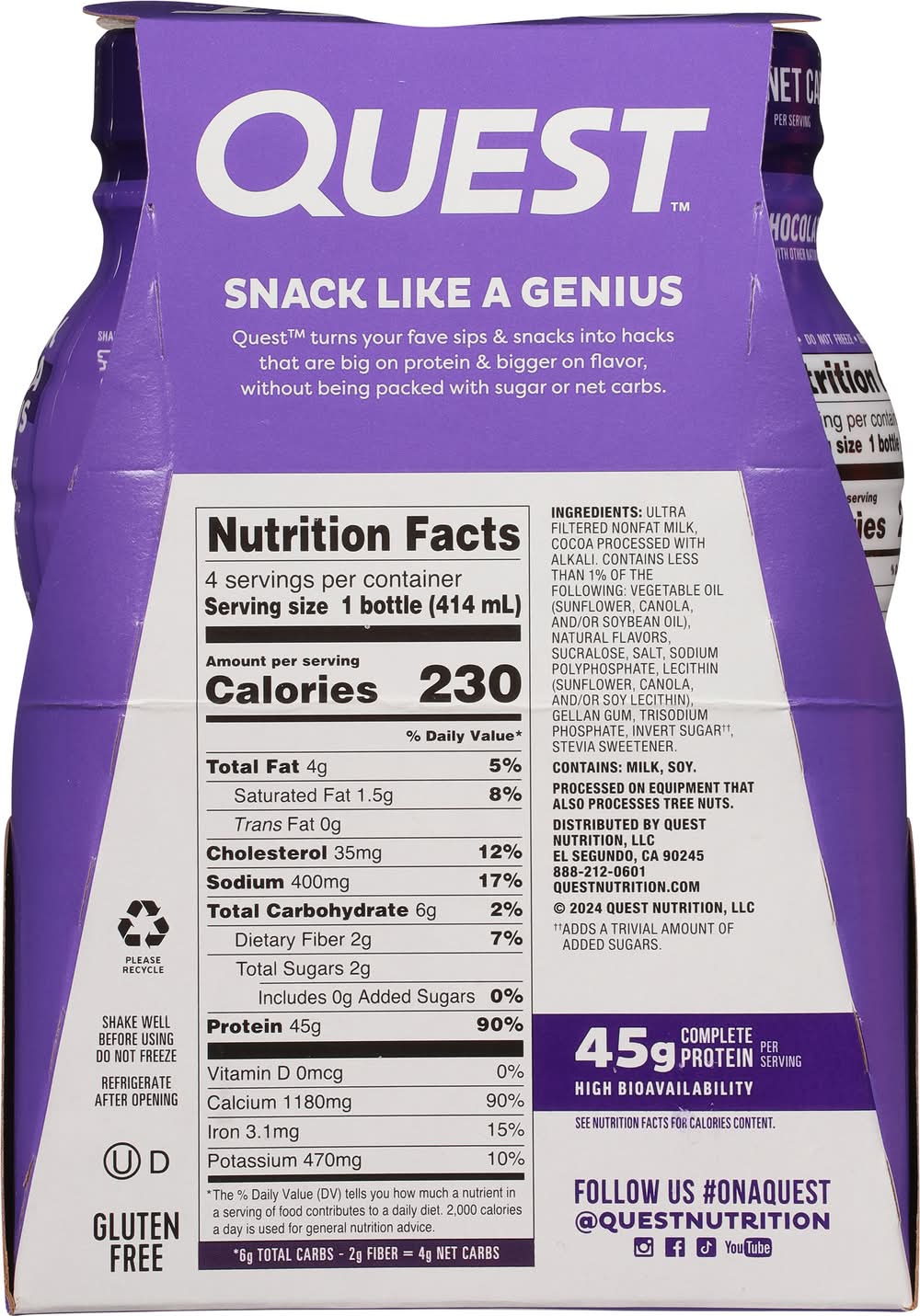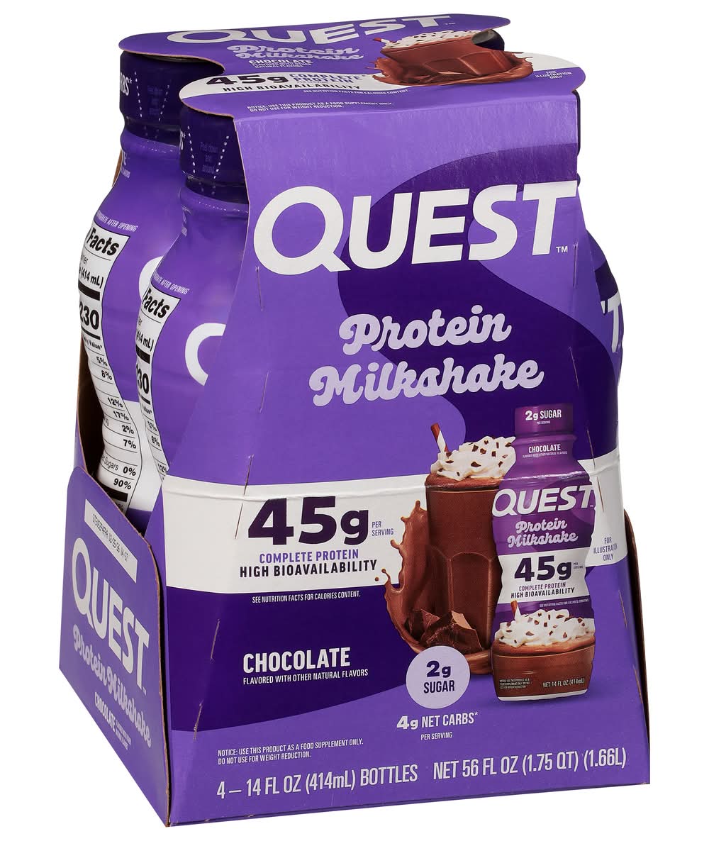 Quest Protein Milkshake, Chocolate (4 x 14 fl oz)