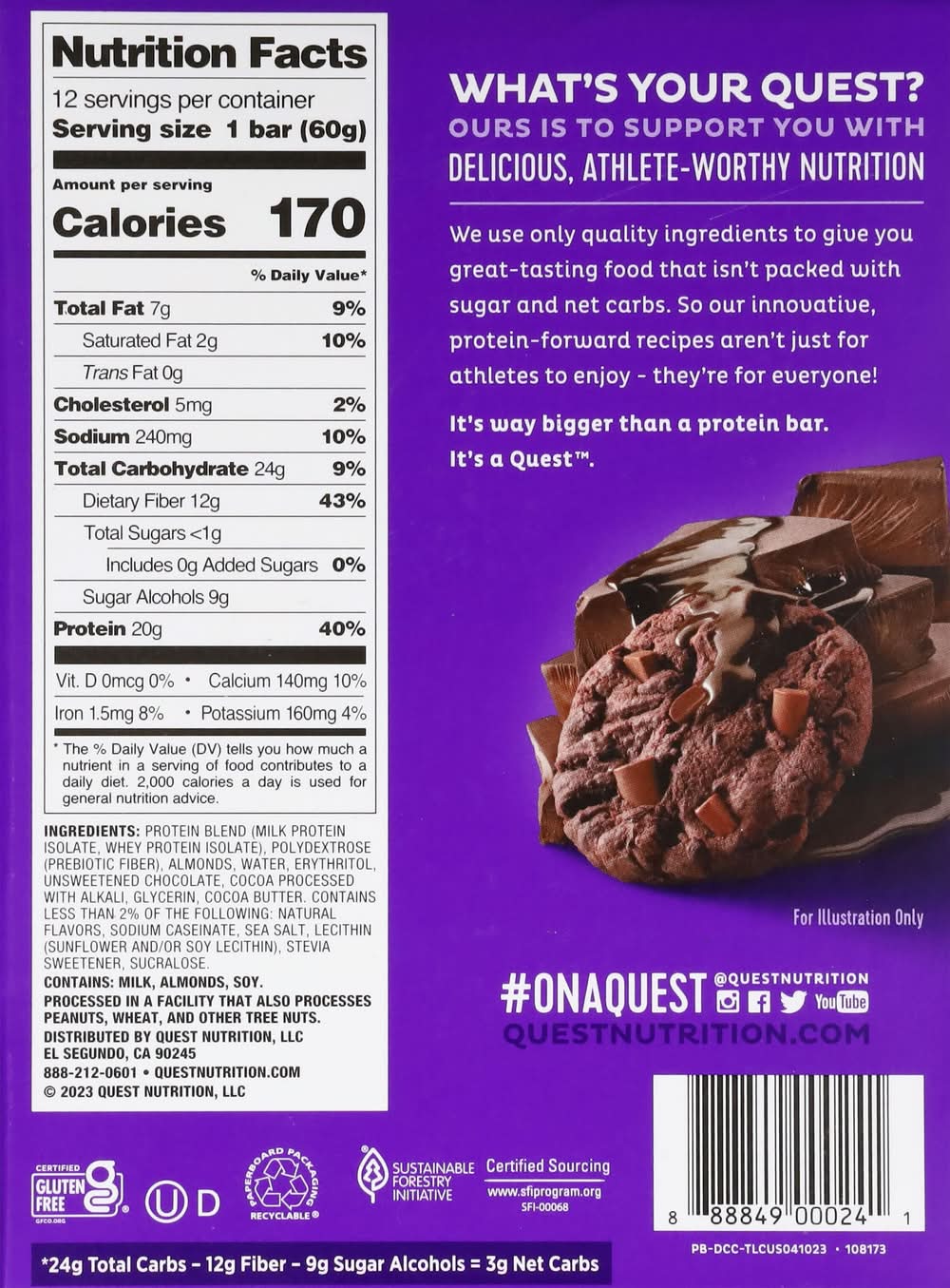 Double Chocolate Chunk Protein Bar • Size: 1 • Quest Nutrition, El Segundo, CA, 90245