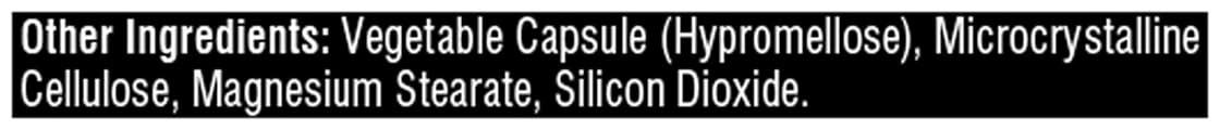 Ingredients: Other Ingredients: Vegetable Capsule (Hypromellose), Microcrystalline Cellulose, Magnesium Stearate, Silicon Dioxide