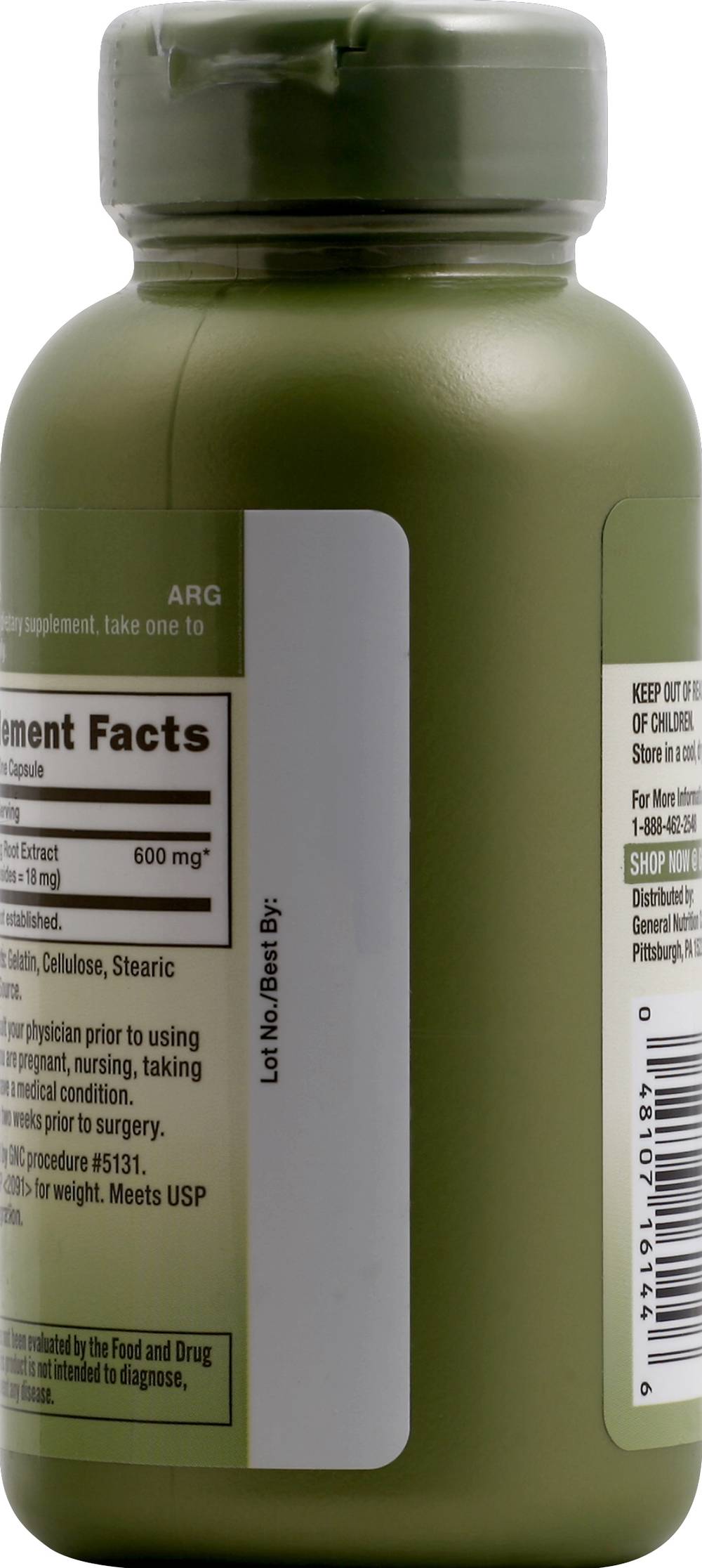 Herbal Supplement. Supports vitality. Standardized extract. Potency verified by GNC procedure No. 5131. Conforms to USP 2091 for weight. Meets USP 2040 disintegration. For More Information: 1-888-462-2548. Shop now (at)GNC.com. (These statement has not been evaluated by the Food and Drug Administration. This product is not intended to diagnose, treat, cure, or prevent any disease).