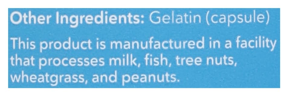 Ingredients: Other Ingredients: Gelatin Capsule. Contains: Fish, Tree Nuts, Wheat, Peanuts