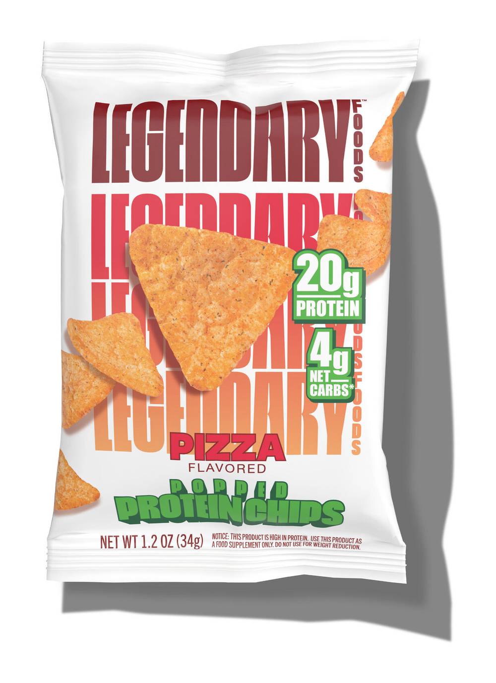 Legendary Foods™ - Popped Protein Chips: Pizza - 7 Bags Protein Chips That Don't Suck! For chip fanatics that want more protein per calorie we invite you to the future: a crispy, satisfying snack with bold flavor and a clean finish chip after chip after chip. • 20g Protein • 4g Net Carbs • 53% Calories from Protein • Gluten Free • Keto Friendly • Flavor: Pizza • Pack size: 7 • Size: 1