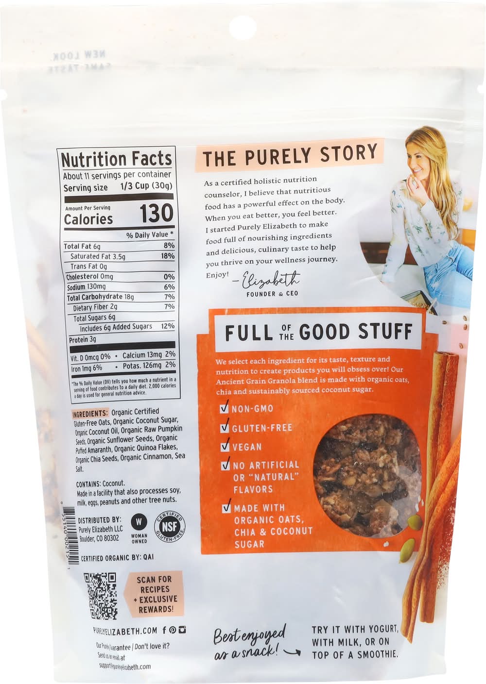 Ancient Grain Granola, Pumpkin Cinnamon, Recipe No. 03 Purely Elizabeth LLC, Boulder, CO, 80301
