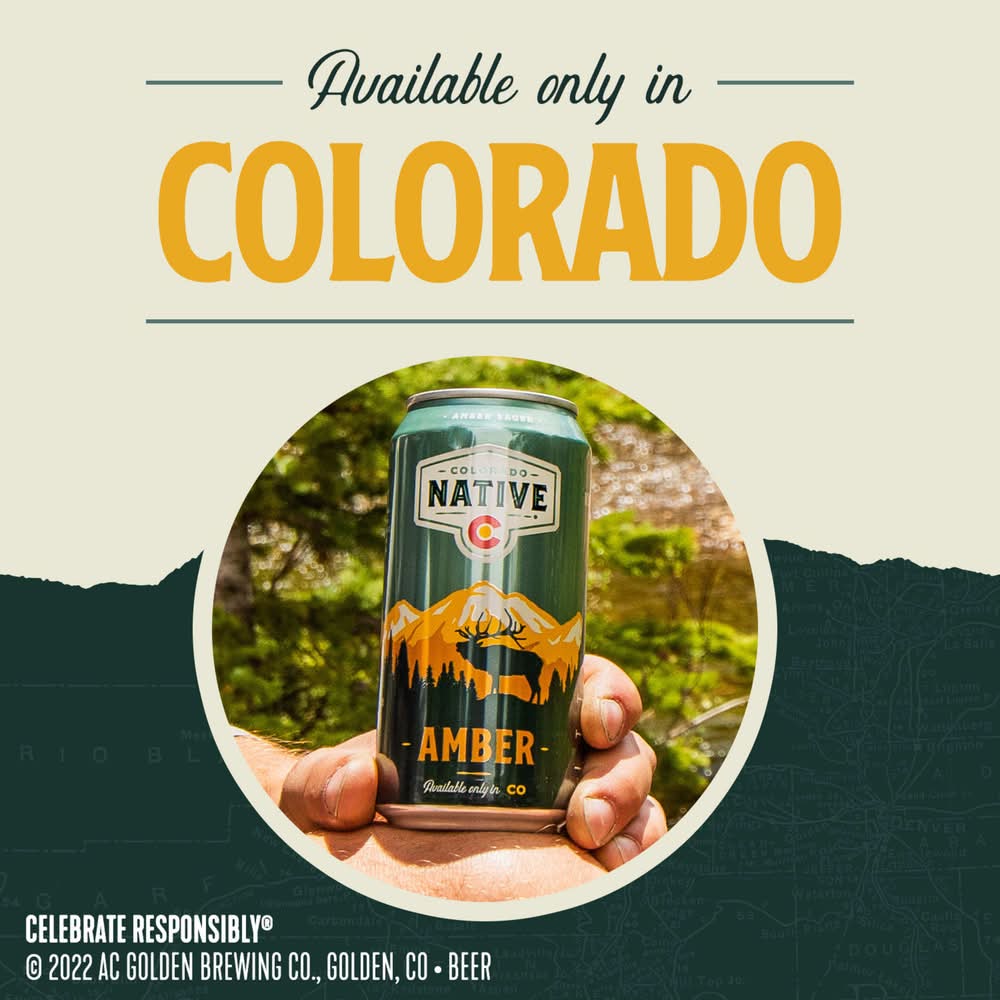 Savor the medium body and refreshing flavor of Colorado Native Amber Lager craft beer with 5.5% ABV. Our Amber beer is made with 100% Colorado ingredients and is only available in Colorado. This sessionable, yet flavorful beer has a crisp malty sweetness with moderate hoppiness and a clean finish. Each sip will bring a grapefruit hop aroma with hints of sweet caramel malts for a perfect, well-balanced brew for any Colorado occasion. This Amber beer is suitable for warmer afternoons yet still flavorful for when you're looking to spend the day on the slopes. Pick up a 6 pack of 12-oz beer bottles of this malt beer to enjoy with savory dishes like hearty soups, burgers, spicy pizzas, or grilled meats. You'll like it. Possibly love it. Maybe even smuggle it. Our passion is brewing creative, never-tasted-before craft beer beverages. We are experienced innovators with deep Colorado roots who are literally brewing the future of beer. Modern beers for modern tastes and lifestyles. We are AC Golden. • Brand: Colorado native • Category: Amber / vienna lager • Pack size: 6 • Alcohol by volume: 5.5% • IBU: 38 • Medium bodied • Tasting notes: caramel, grapefruit, malty • Food pairing: beef, cheese - hard aged, lamb • Suggested glassware: pint glass, pilsner glass