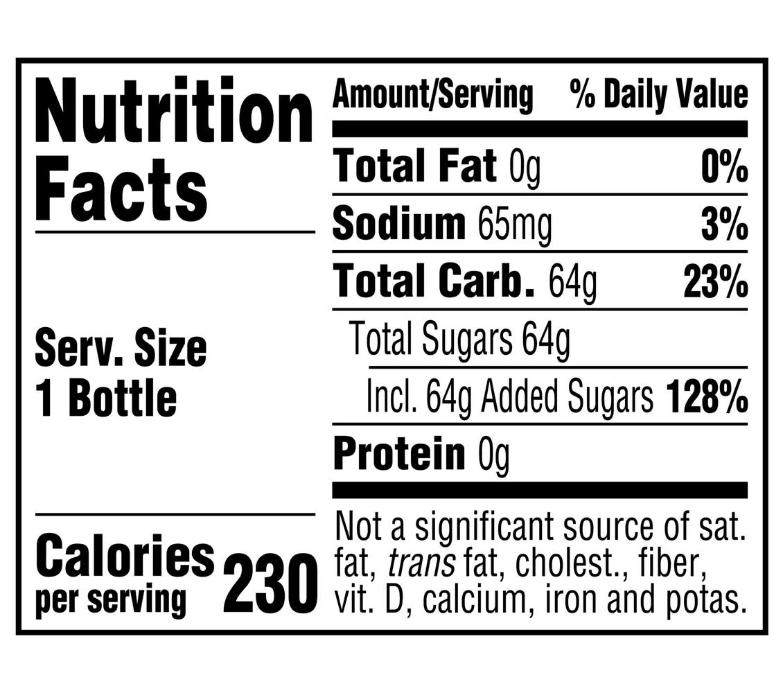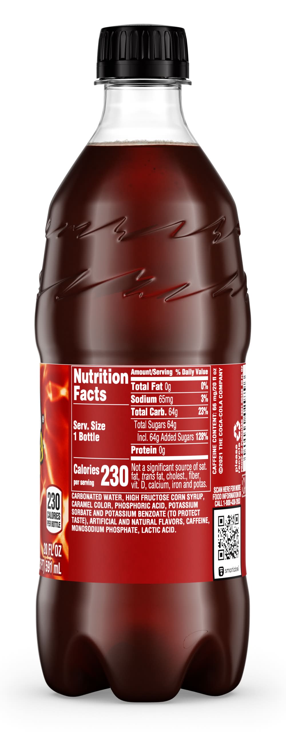 Ingredients: Carbonated Water, High Fructose Corn Syrup, Caramel Color, Phosphoric Acid, Potassium Sorbate And Potassium Benzoate (To Protect Taste), Artificial And Natural Flavors, Caffeine, Monosodium Phosphate, Lactic Acid, Polyethylene Glycol. Contains: Corn