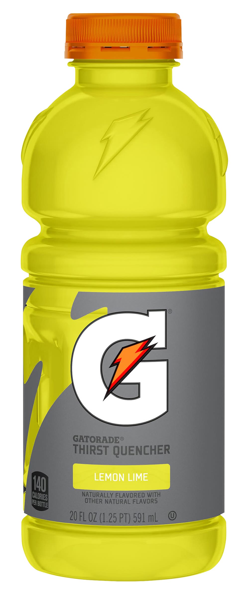 Designed to hydrate and replace electrolytes lost during sweat. Recognized for over five decades of scientific research and testing in sports performance, it is formulated to provide superior hydration compared to water. The flavor offers a refreshing taste during exercise and athletic activities. • Flavor: Lemon lime • Gatorade, PO Box 049003,Chicago,IL,60604