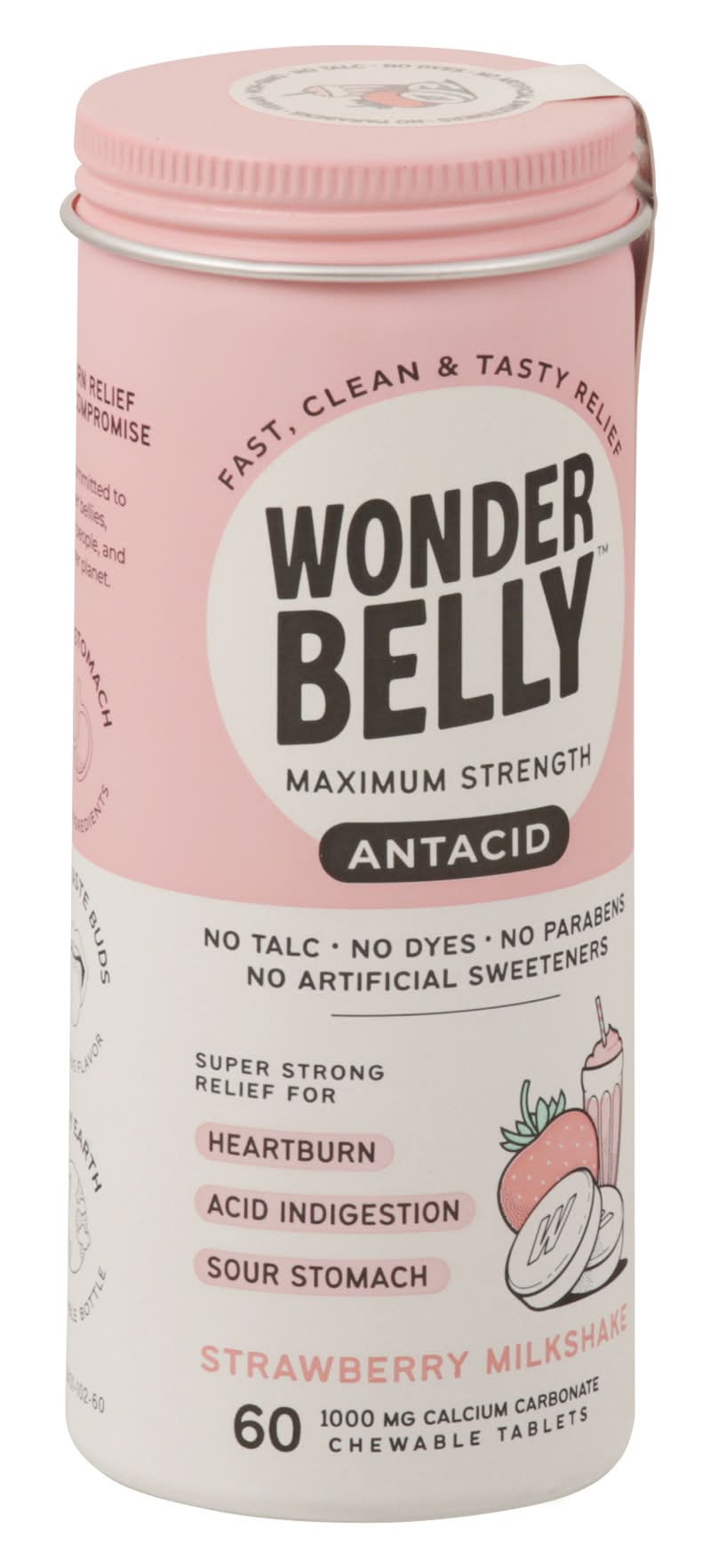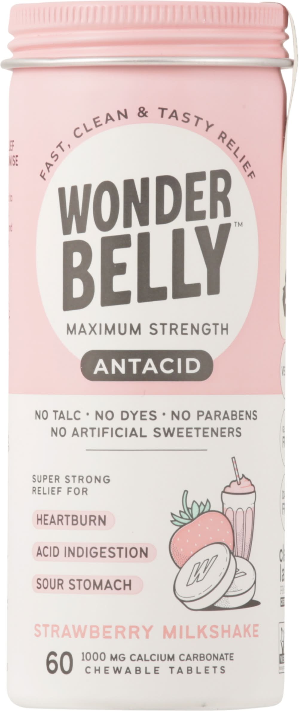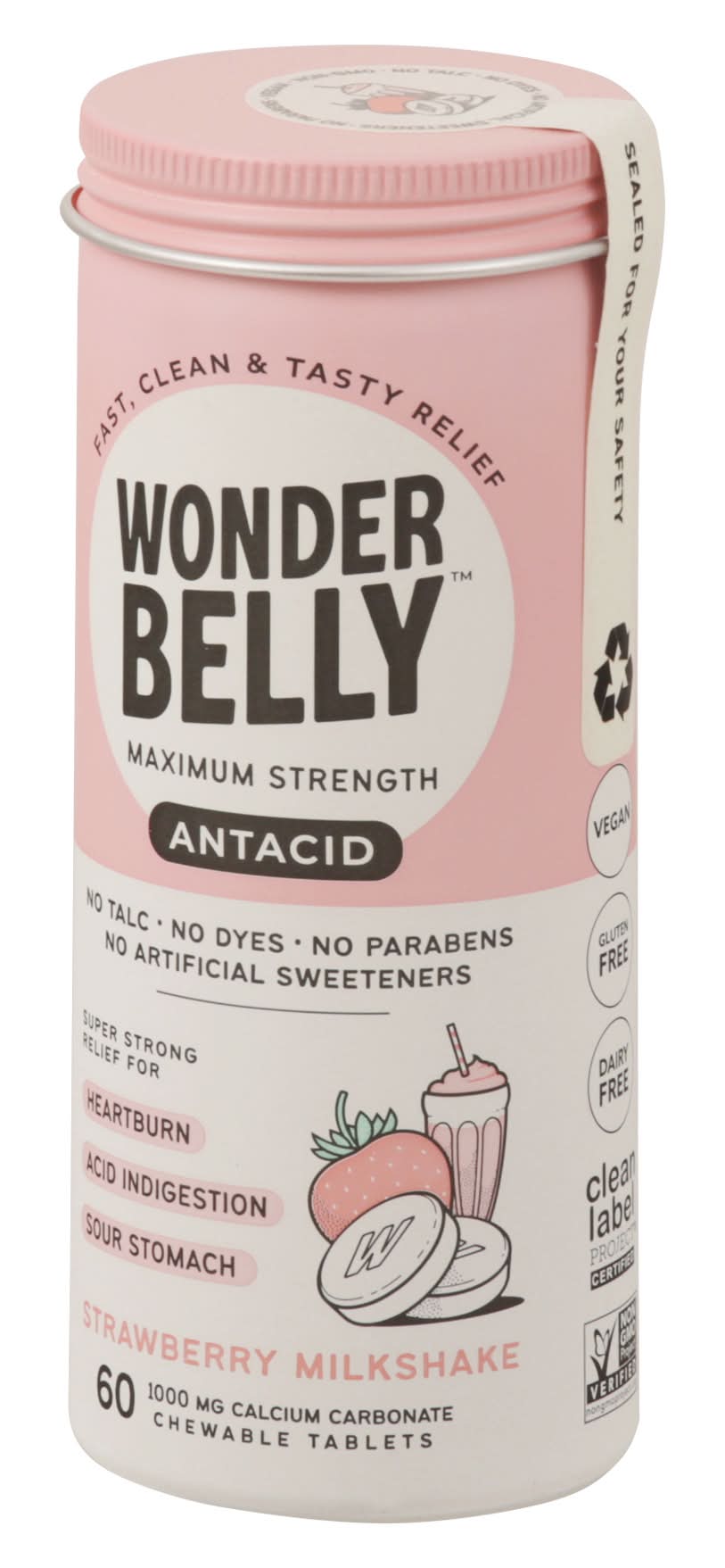 Wonderbelly 1000 Mg Antacids Chewable Tablets, Strawberry Milkshake (60 ct)