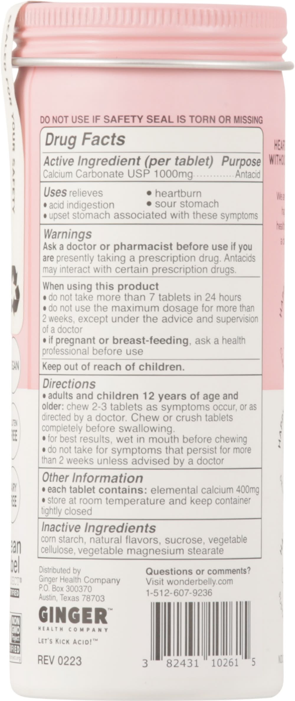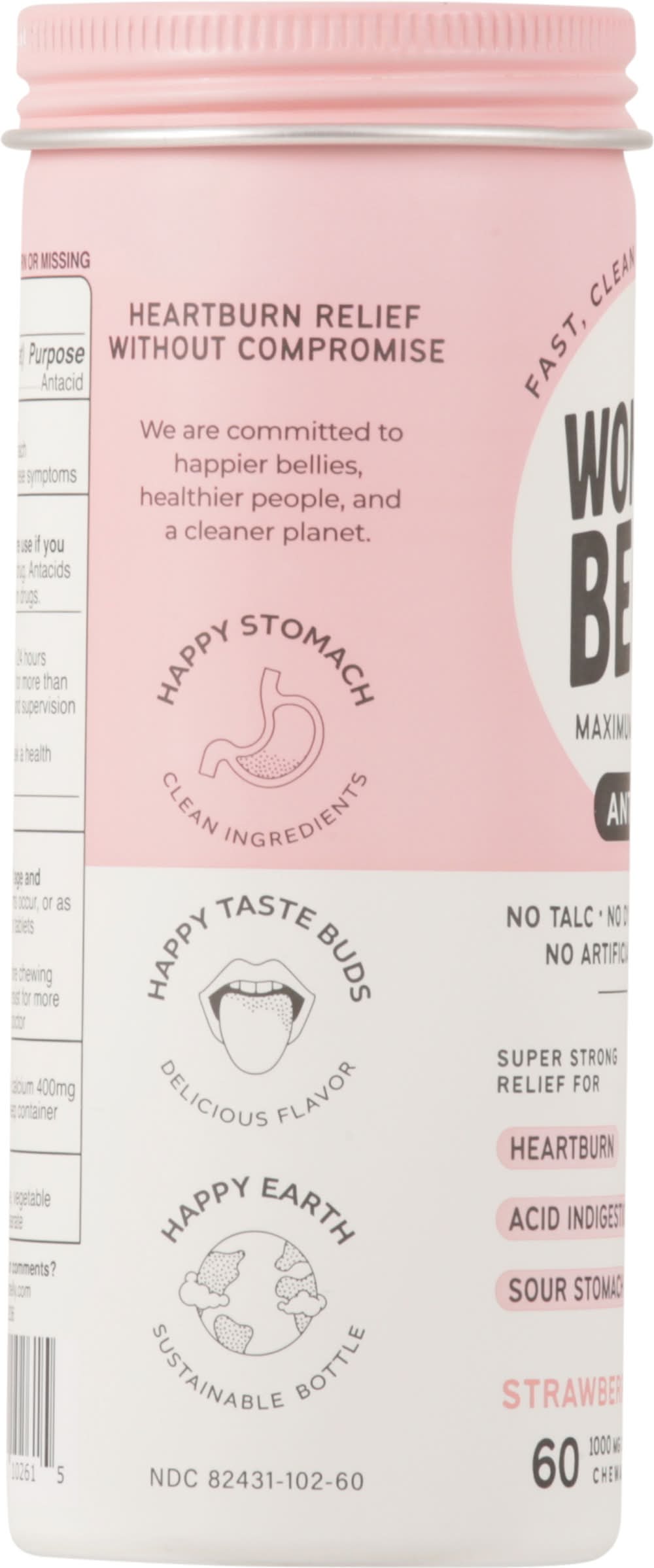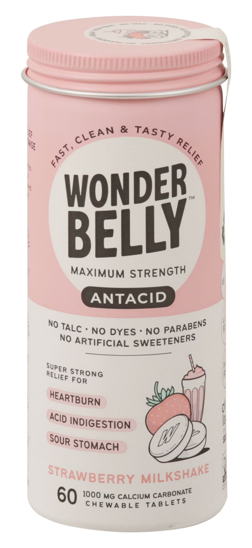 Wonderbelly 1000 Mg Antacids Chewable Tablets, Strawberry Milkshake (60 ct)