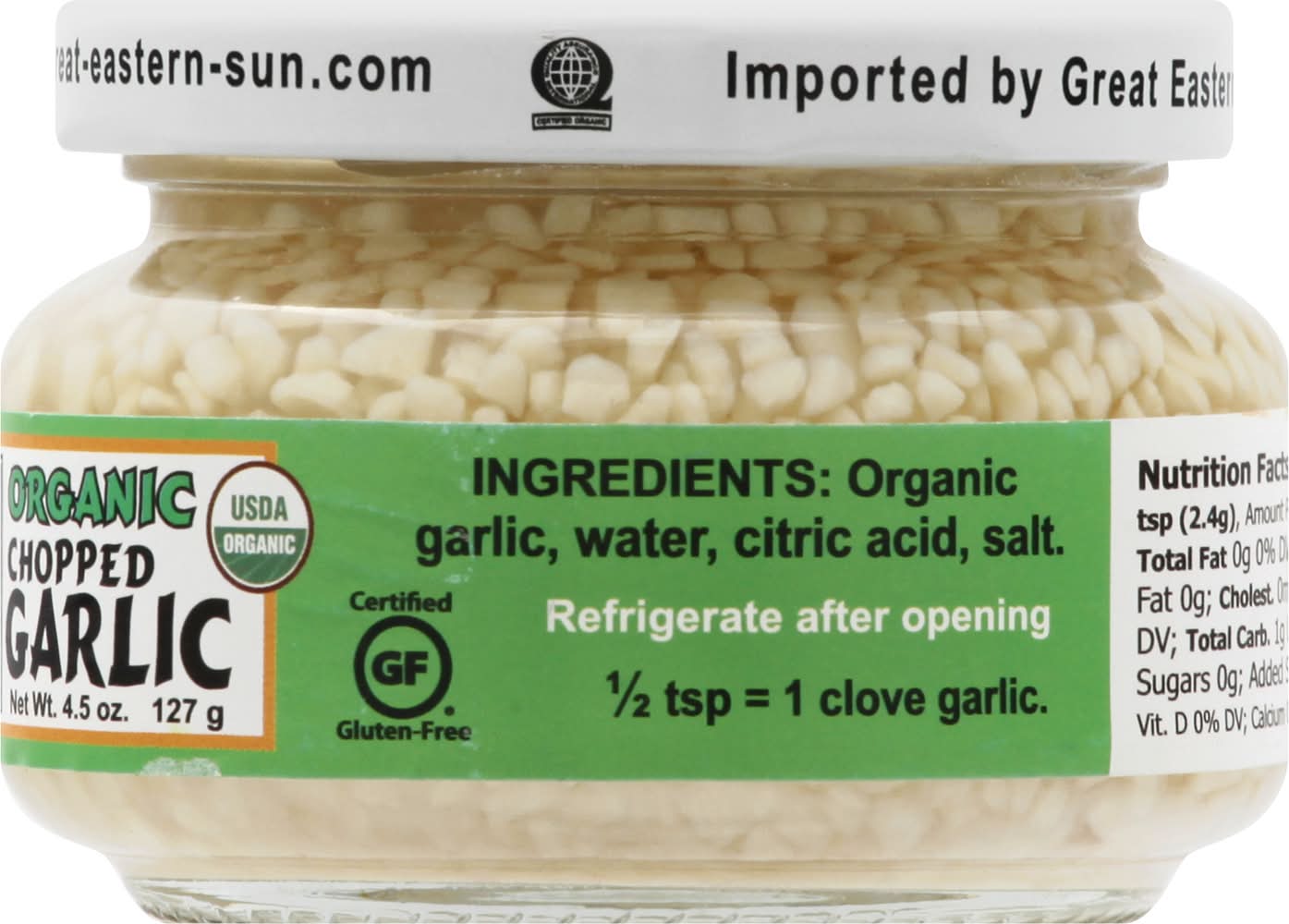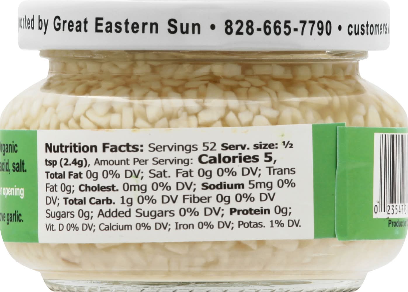 Garlic, Organic, Chopped • Number of servings: 52 • GREAT EASTERN SUN, Asheville, NC, 28806, Ph: 828-665-7790