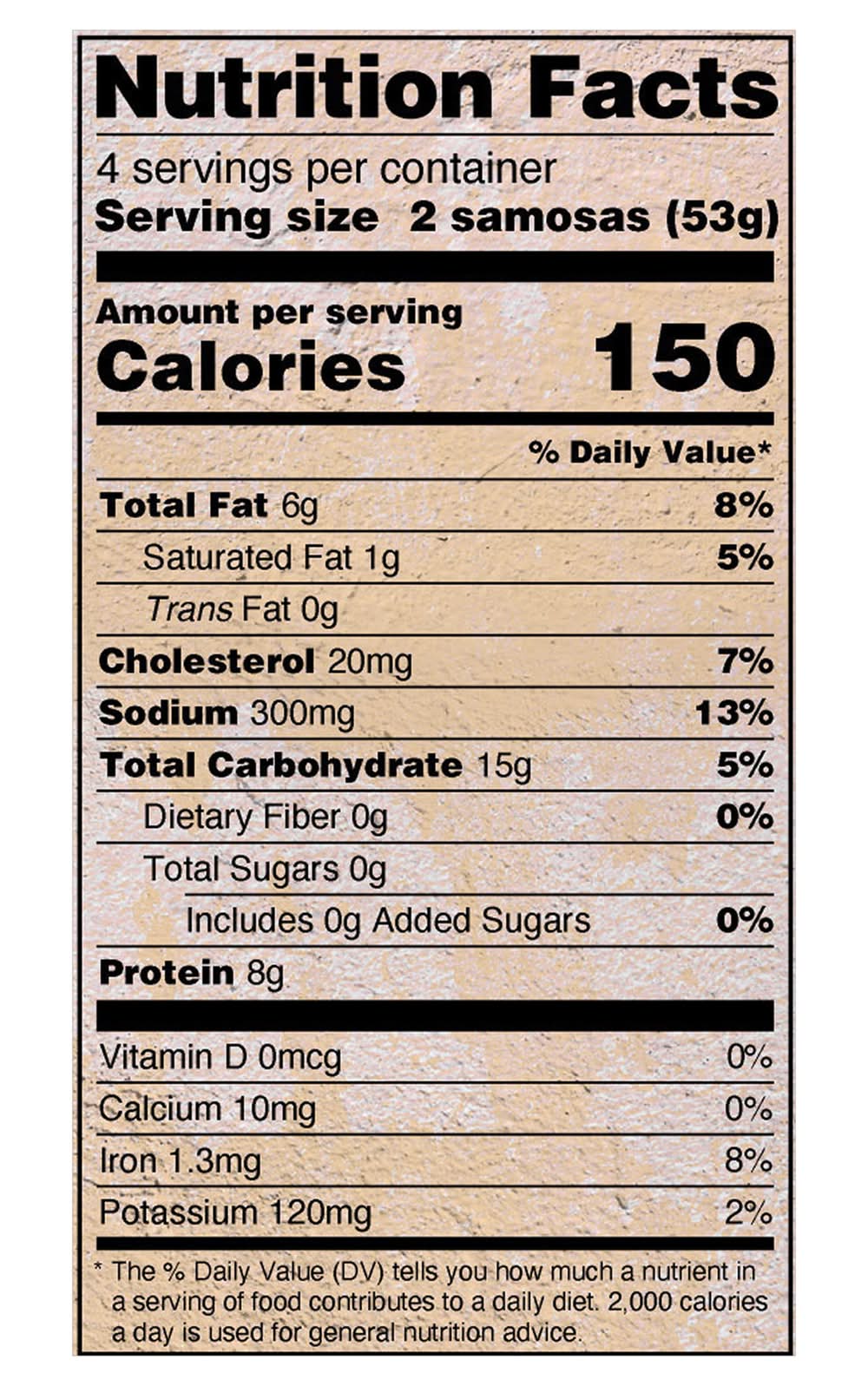 Medium Spicy, Juicy chicken. Tandoori spices. Flaky crust. 8 g protein per serving. Certified Halal: ISNA-Halal Certification Agency. ISNA Canada. Always made from scratch. No artificial ingredients. No antibiotics ever. Welcome to India and welcome to our family’s kitchen. Big or small, we believe anything worth doing is worth doing right. We make these little golden appetizers from scratch and inside their flaky pastry crust is our flavorful chicken tikka masala. They take us hours to prepare, but they're usually cooked and gone in minutes! This Dish Features: Tomatoes, turmeric, ghee, cumin & wheat. • Flavor: Chicken tikka • Number of servings: 4 • Packaging: Reusable