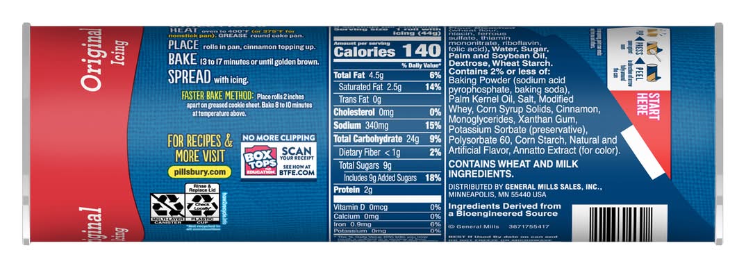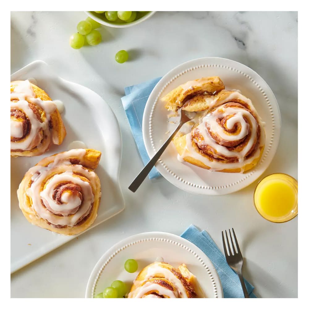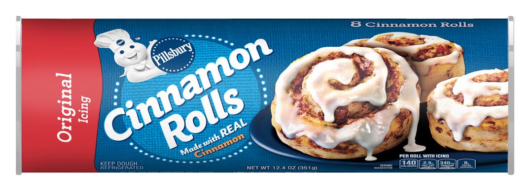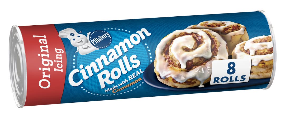 Pillsbury Cinnamon Rolls With Original Icing are easy-to-bake dough rolls accompanied by premade icing. They are crafted to enhance both everyday and holiday breakfasts. These rolls are free from colors from artificial sources and do not contain high fructose corn syrup.