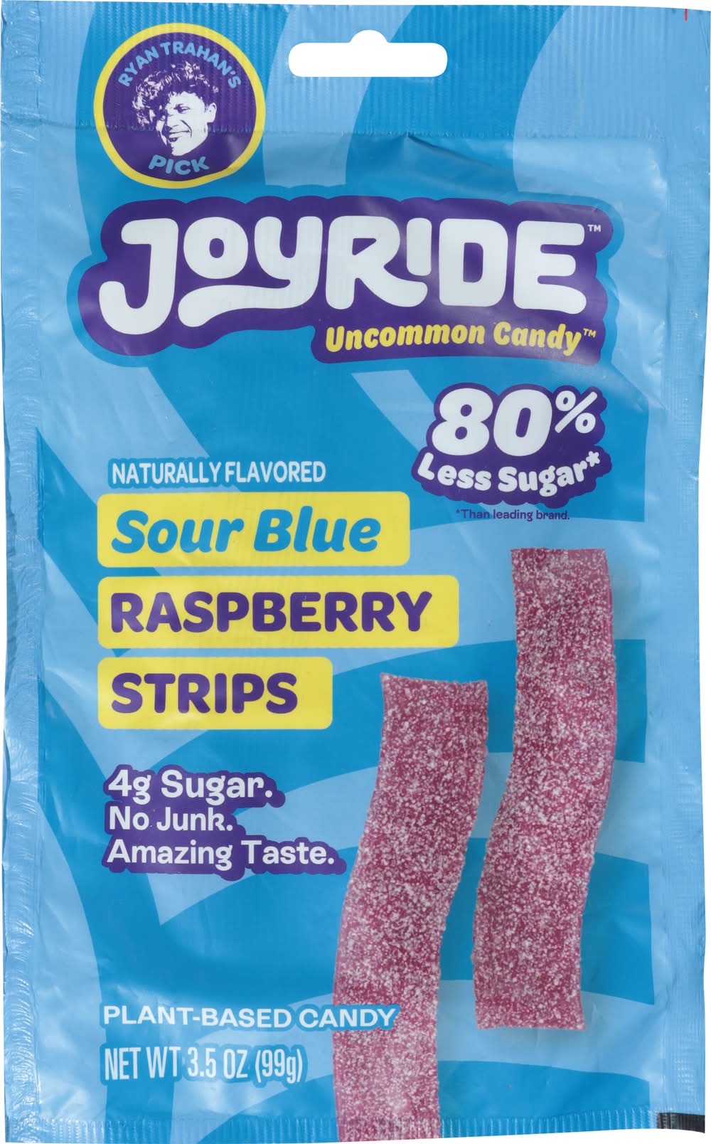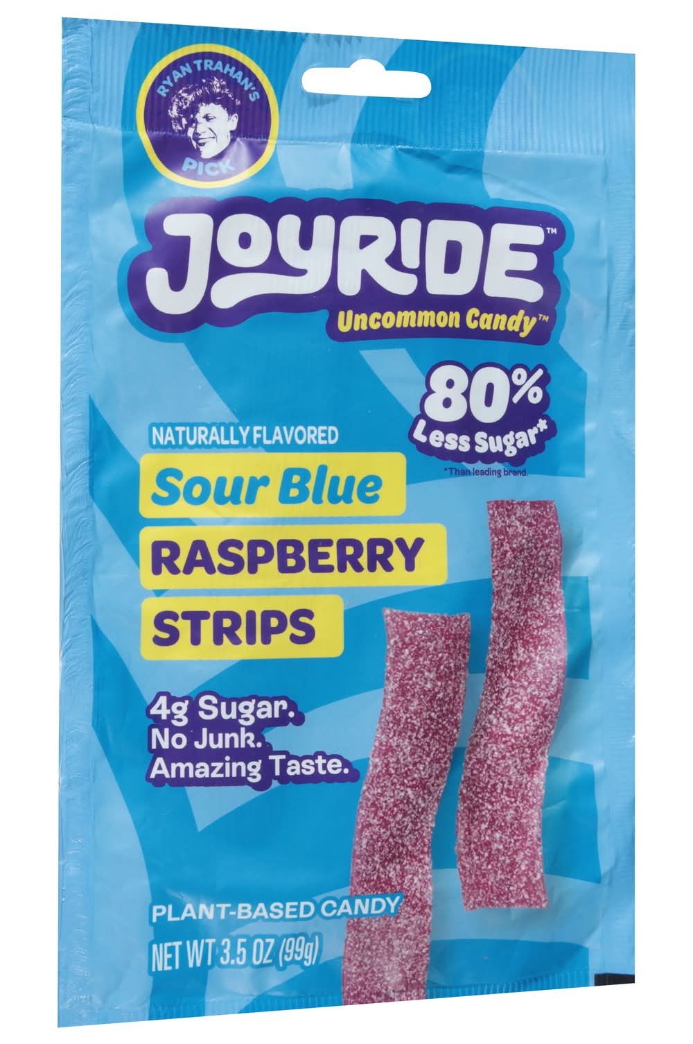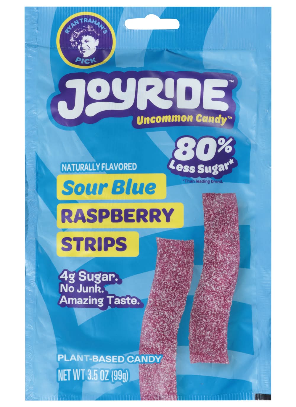 JOYRIDE is candy reimagined. Less Sugar, No Fake Junk and Amazing Tasting. We’re on a mission to make you re-think what better for you candy can be. This is candy for good, done better: made from honest ingredients, not settling for “diet” sweeteners, plant based and sold at a fair price. We’re making the world a little sweeter along the way, bringing joy to your day. Flavor: Sour blue-raspberry