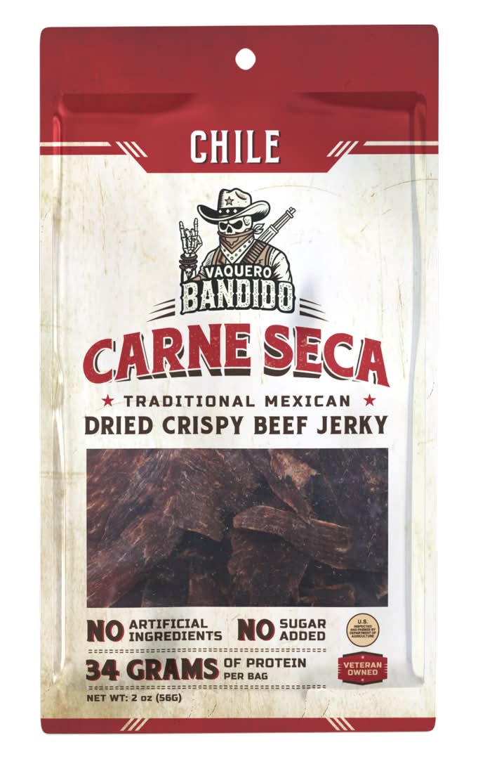 Infused with chili seasoning to provide a spicy kick to the classic dried beef snack, Chile Carne Seca is ideal for those who enjoy a robust, spicy twist on their traditional beef jerky. Each bite is crispy, protein-packed, and dangerously delicious.