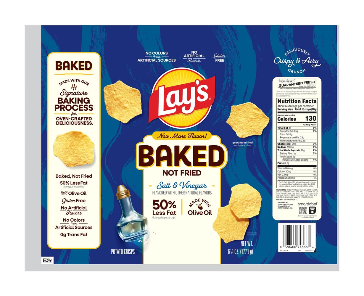 Lay's 50% Less Fat Baked Not Fried Potato Crisps, Salt & Vinegar (6.25 oz)