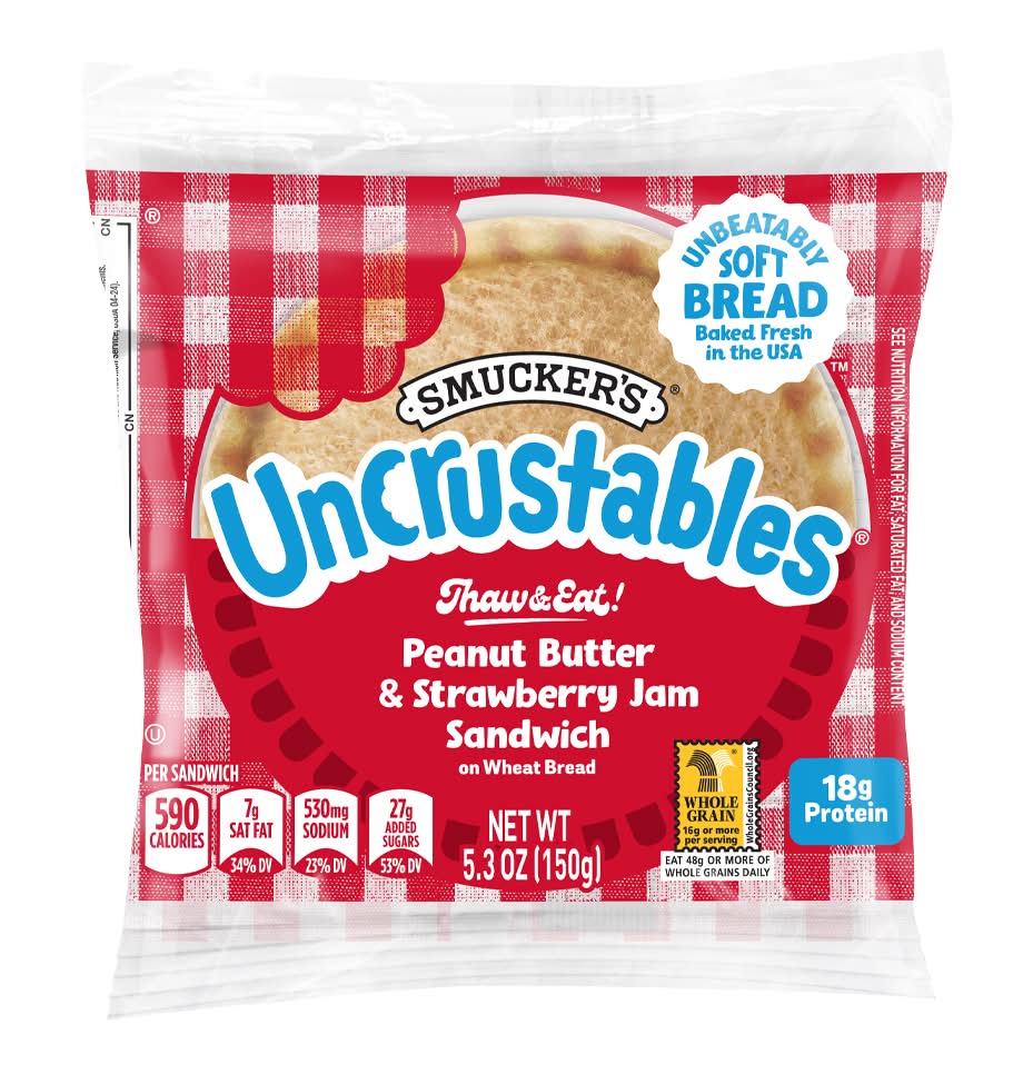 Smucker's Uncrustables Peanut Butter and Jelly Sandwich on Wheat Bread is crafted to provide a handheld treat that merges fruity and nutty flavors. Ideal for enjoying on-the-go, this product allows for a convenient eating experience anytime, anywhere. Its composition includes wheat bread, pairing traditional taste with ease of consumption.