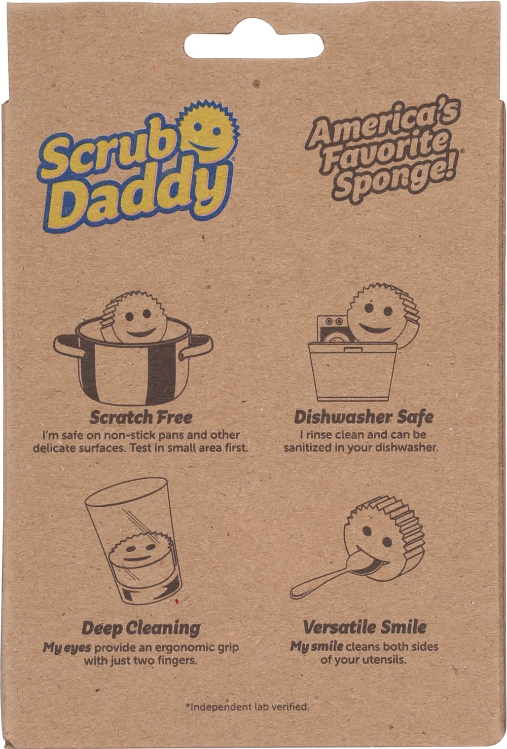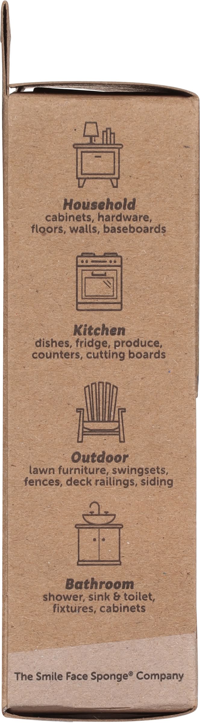 I'm safe on non-stick pans and other delicate surfaces. Test in small area first. My smile cleans both sides of your utensils. It is soft in warm water and firm in cool water for more scrubbing power I rinse quickly and resist stains and odors. Plus, I'm certified scratch free. Independent lab verified. Over 1¹/₂ inches of serious scrubbing power! Cabinets, hardware, floors, walls, baseboards Kitchen Dishes, fridge, produce, counters, cutting boards Lawn furniture, swingsets, fences, deck railings, siding Shower, sink & toilet, fixtures, cabinets Packaging: Reusable
