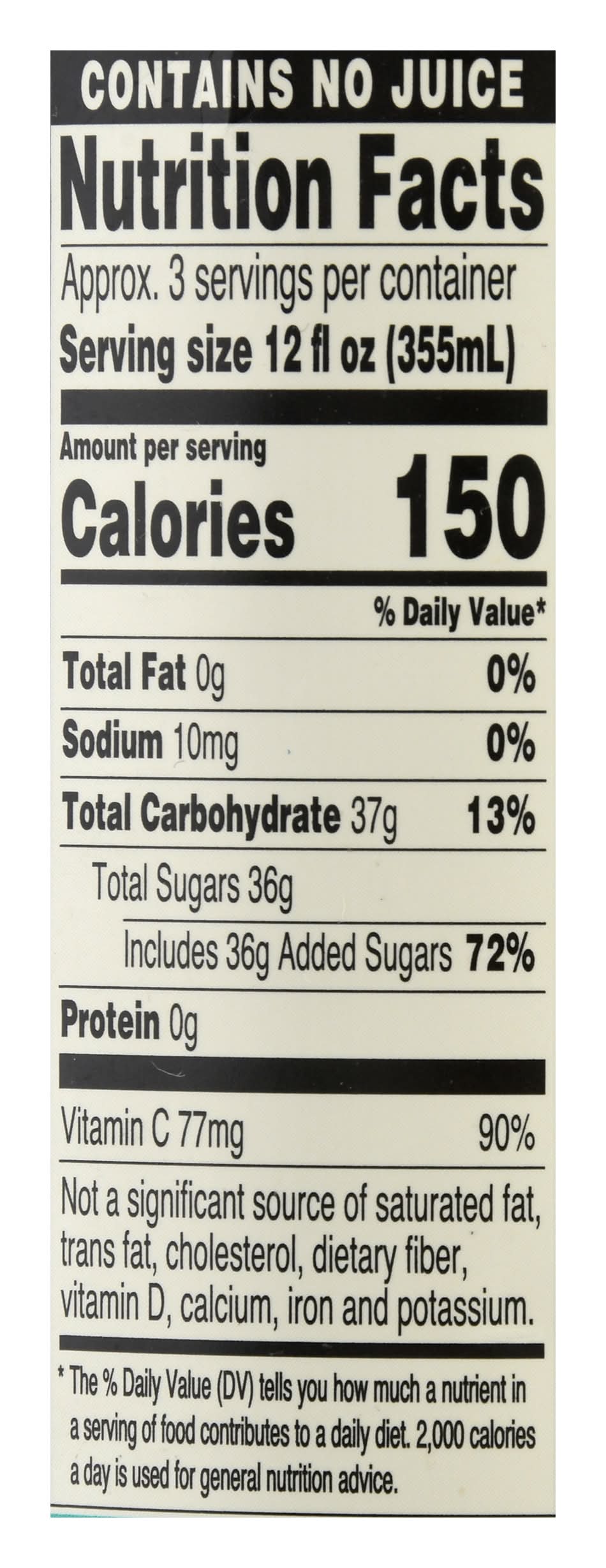 Ingredients: Premium Brewed Blend of Black Teas Using Filtered Water, High Fructose Corn Syrup (Glucose- Fructose Syrup), Citric Acid, Natural Peach Flavor, Ascorbic Acid (Vitamin C)