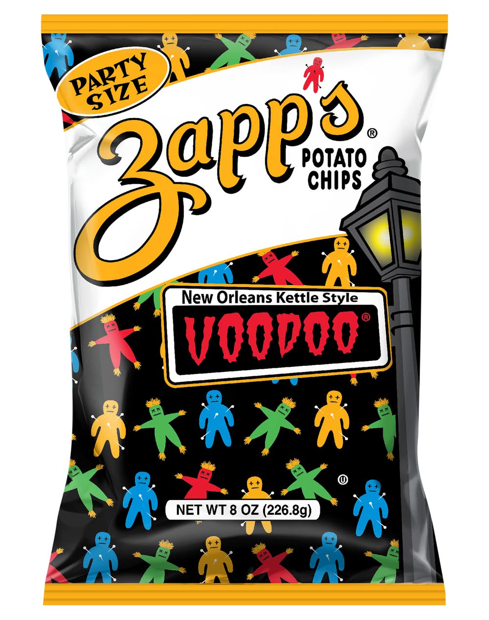Our voodoo chips will put a spell on you! The delicious result of a happy accident, these chips have a unique flavor that features salt and vinegar with a smoky BBQ sweetness. Trust us on this one. Zapp's Potato Chips, Hanover, PA, 17331
