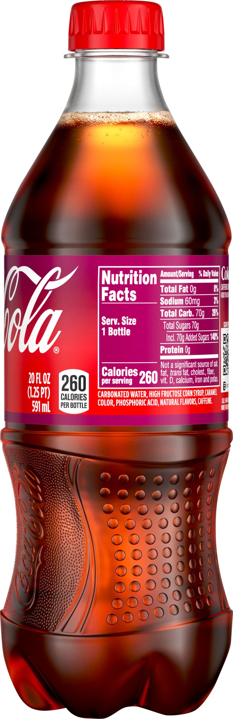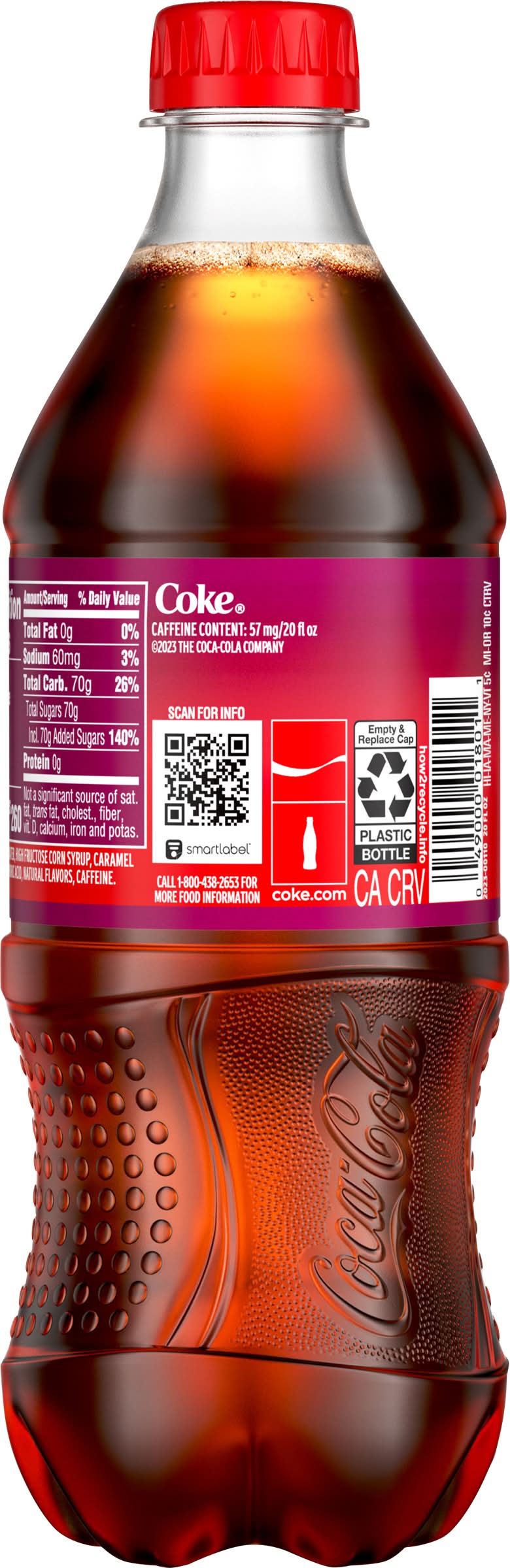 Soda. Pop. Soft drink. Sparkling beverage. Whatever you call it, nothing compares to the refreshing, crisp taste of Coca-Cola Cherry. A little flavor can make a lot of magic happen and Coca-Cola Cherry is here to make your taste buds happy. Enjoy with friends, on the go or with a meal. Whatever the occasion, Coca-Cola Cherry makes life’s special moments a little bit better. Every sip, every “ahhh,” every smile—find that feeling with Coca-Cola Cherry. Best enjoyed ice-cold for maximum refreshment. Grab a Coca-Cola Cherry and find your “ahhh” moment. Enjoy Coca-Cola Cherry. • Flavor: Cherry • The Coca-Cola Company, Atlanta, GA • Packaging: Reusable