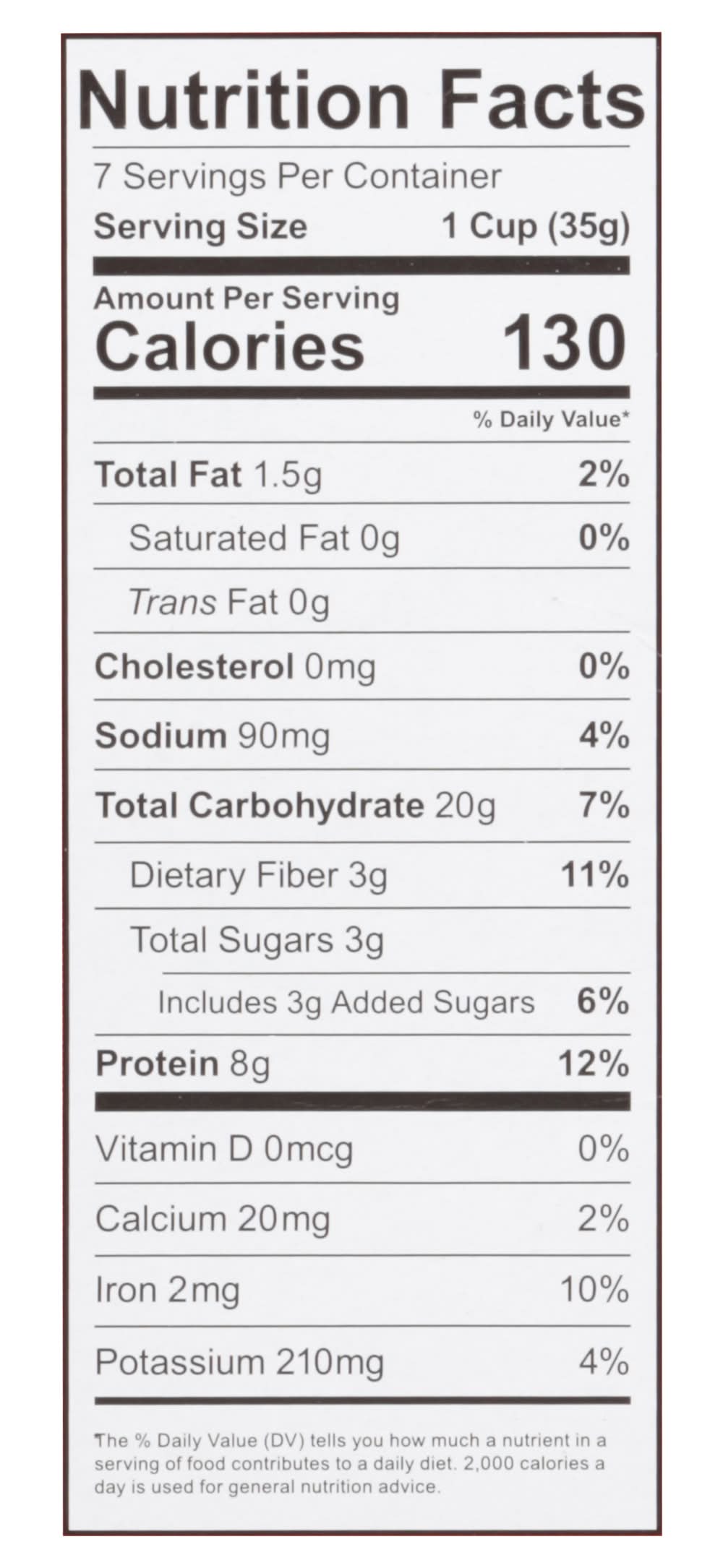Grain Free Cereal offers a blend of flavors and nutritional benefits. Each serving provides 8 grams of protein and contains only 3 grams of sugar. Certified as gluten-free, this product also excludes the use of peanuts, wheat, dairy, and soy, catering to a variety of dietary needs. Additionally, this cereal is vegan and does not incorporate corn, rice, or oats into its ingredients. It has been verified by the Non-GMO Project, ensuring that it's made with non-genetically modified ingredients. The first flavor to be introduced in this line is cinnamon, providing a plant-based, protein-rich breakfast option without relying on traditional grains. • Flavor: Cinnamon • Number of servings: 7