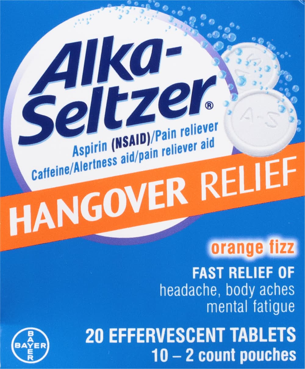 Hangover Relief, Effervescent Tablets, Orange Fizz Bayer HealthCare LLC, Whippany, NJ, 07981