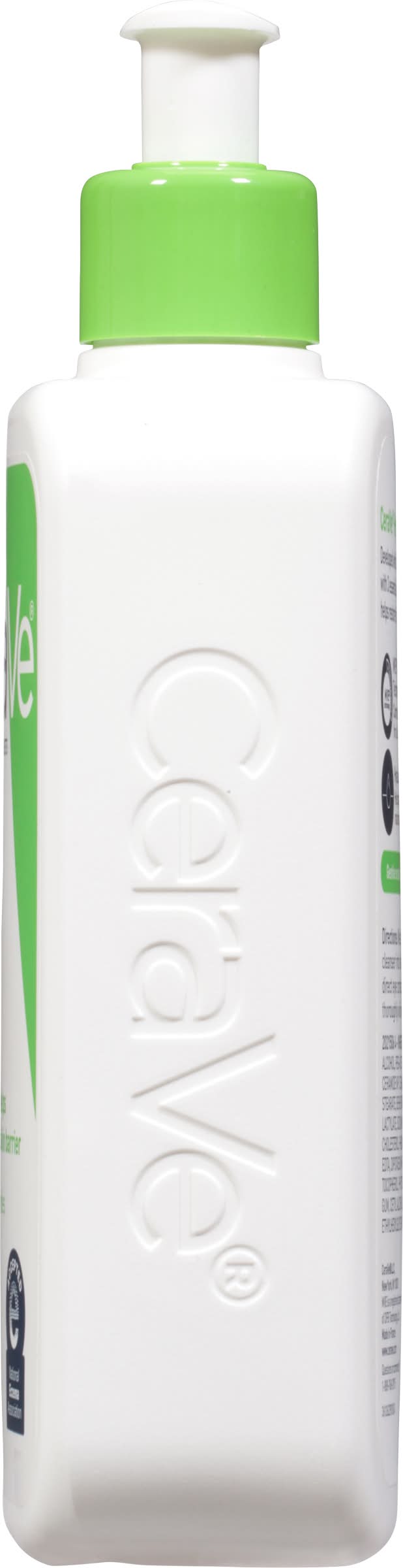 Developed with dermatologists. For normal to dry skin. Cleanses, hydrates & helps restore the protective skin barrier. With 3 essential ceramides & hyaluronic acid. Developed with dermatologists, its unique formula - with 3 essential ceramides - cleanses, hydrates and helps restore the protective skin barrier. MVE Delivery Technology: Controlled release for all day hydration. Hyaluronic Acid: Helps retain skin's natural moisture. Non-Comedogenic: Won't clog pores. Fragrance Free: To avoid fragrance irritation. Gentle on skin. Paraben-free. Non-drying. Eczema National Association accepted. • Cerave Llc, New York,NY,10001 • Packaging: Reusable
